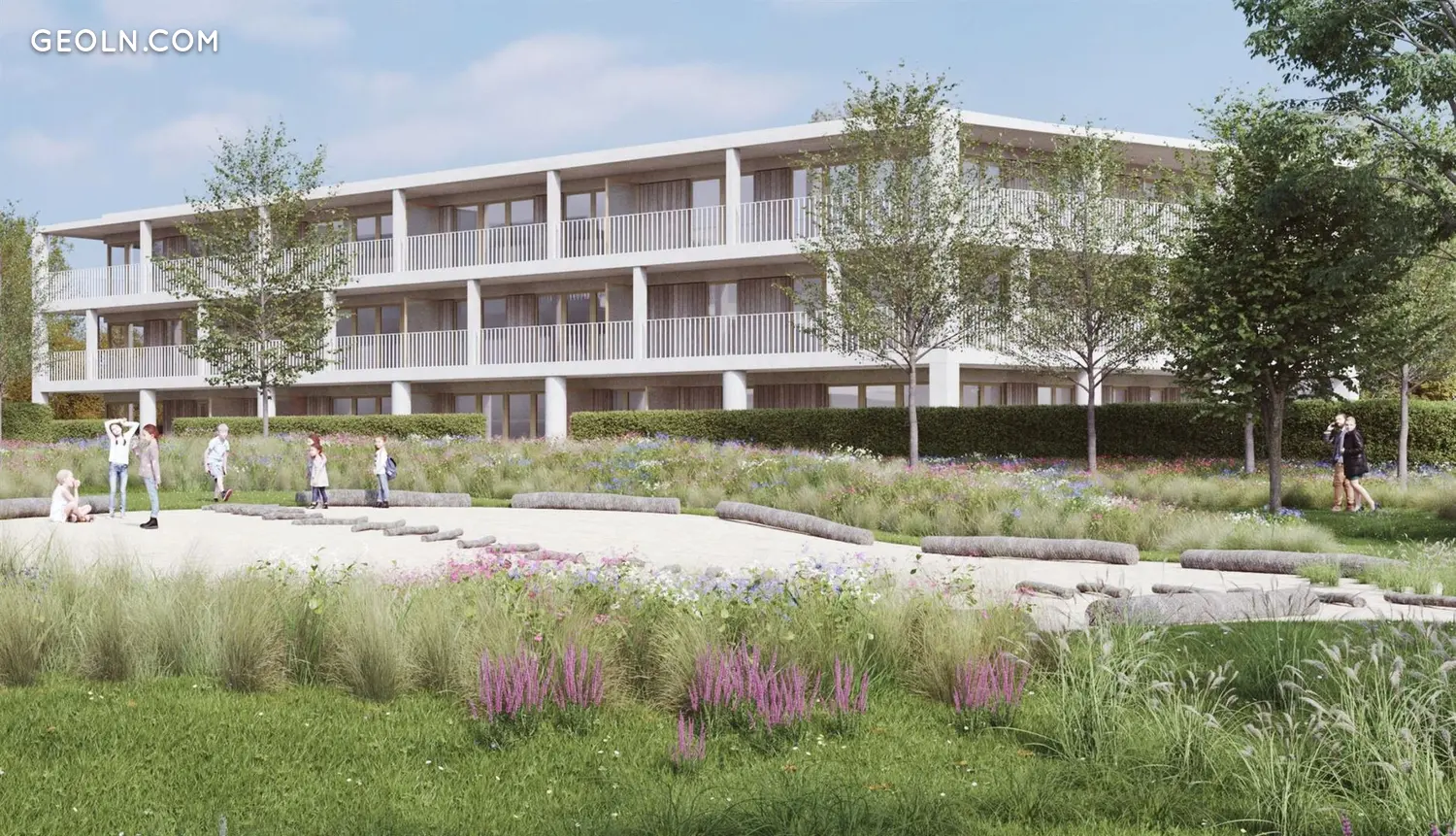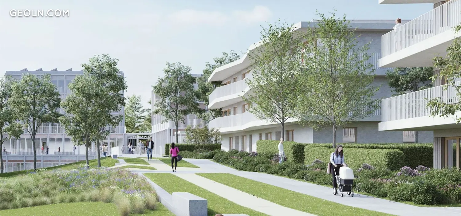 سيتم دمج الكتل السكنية في حديقة خضراء متصلة بالمساحة الخضراء على طول موقع المستشفى المستقبلي.