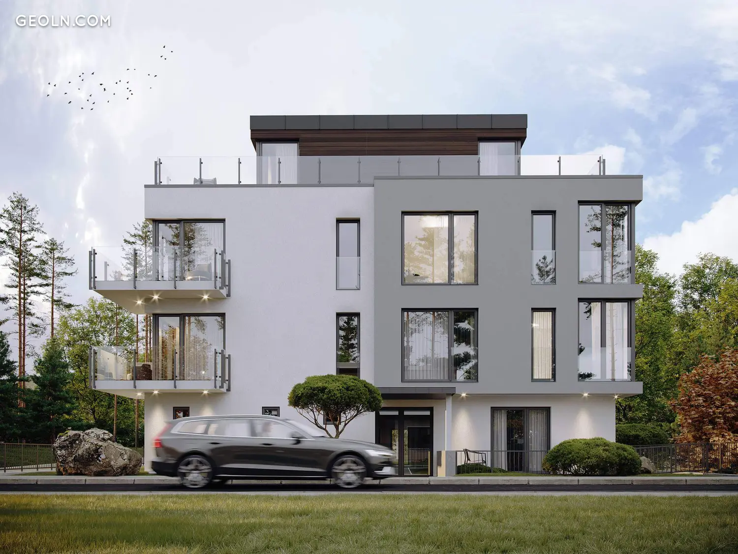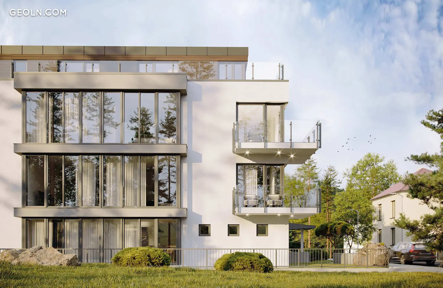 سيتم تجهيز الجدار الجنوبي بأكمله تقريبًا بنوافذ فرنسية منزلقة توفر إطلالات على المساحات الخضراء المحيطة. ستسعد الشقق في الطابق الأول من المشروع المستأجرين بحدائق أمامية خاصة ، وفي الطوابق العليا - شرفات ولوجيا مع زجاج بانورامي. سيقع بنتهاوس خاص بمدخل فردي مباشرة من المصعد في الطابق الأخير من المشروع. تحتوي هذه الشقة على شرفة فسيحة في الهواء الطلق تحيط تقريبًا بمحيط المنزل بالكامل ، وهي شاهقة فوق المباني المجاورة ، وستوفر لسكانها الخصوصية التامة.