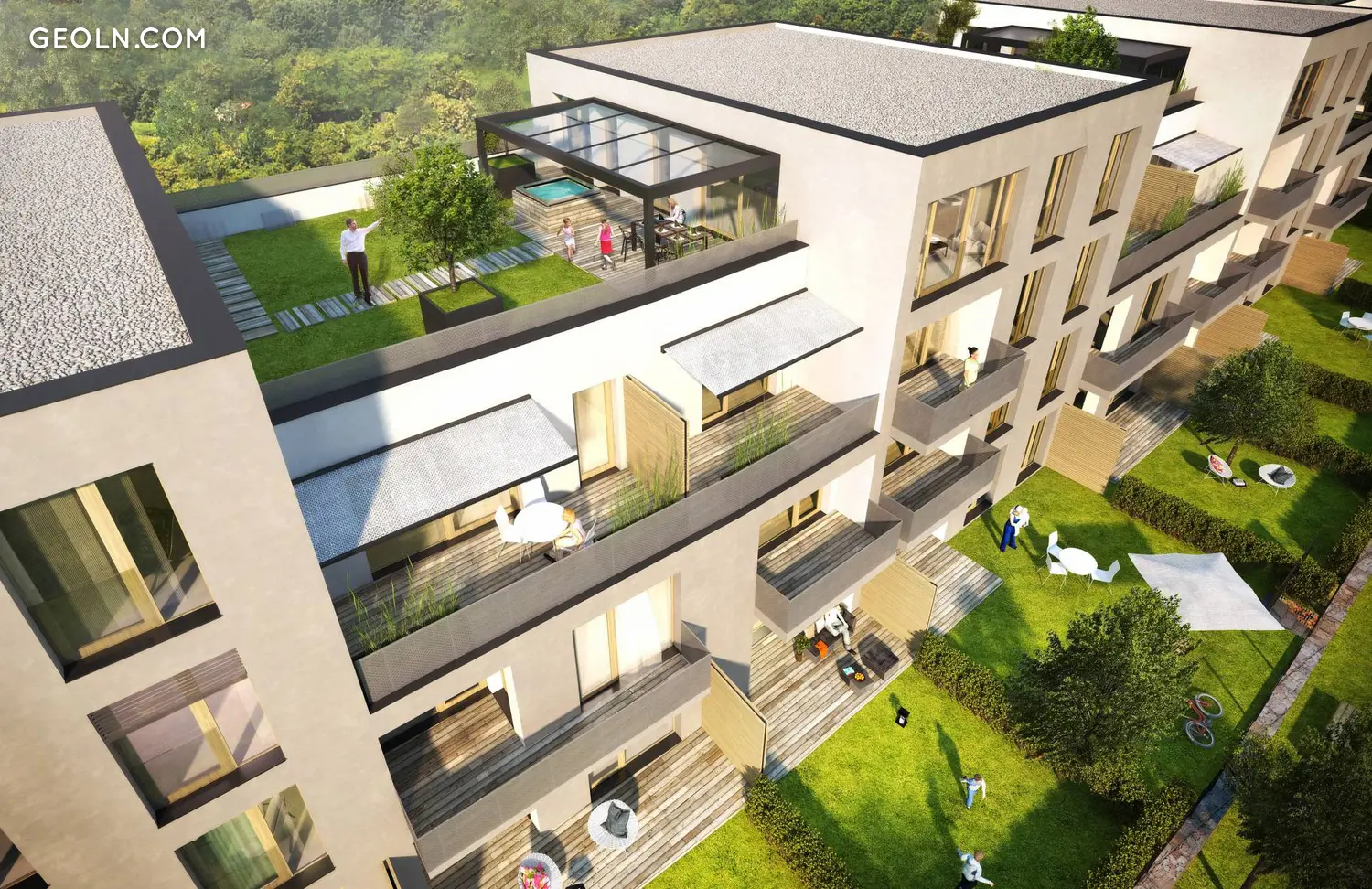 المجمع السكني منفصل عن البيئة ومغلق ولا يمكن الوصول إليه إلا لأصحاب الشقق في المنطقة.