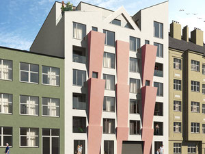 هو عبارة عن مبنى بسقف مسطح بأربعة طوابق فوق الأرض وطابقين تحت الأرض ، ويحتوي على 9 وحدات سكنية تتراوح أحجامها من 1 + KK إلى 4 + KK ومساحة مكتبية في الطابق الأول.