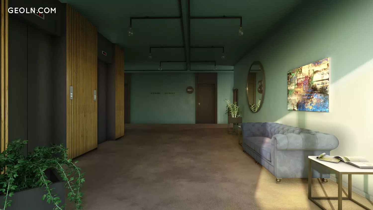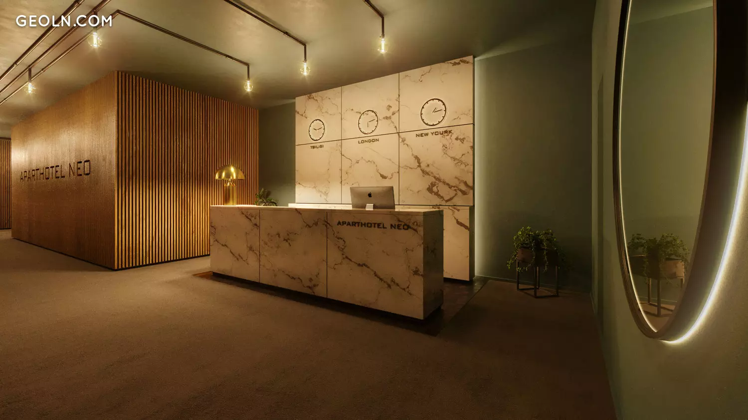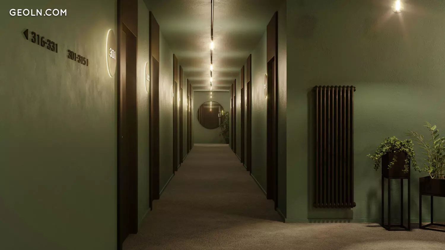 تم تصميم المساحات الداخلية NEO في جودوري على طراز فندق راديسون بلو المجاور. هذان المبنيين مترابطان من خلال نفق مريح تحت الأرض ، وبالتالي فإن البنية التحتية الفندقية بالكامل متاحة لسكان الأجسام القريبة من الأرض.