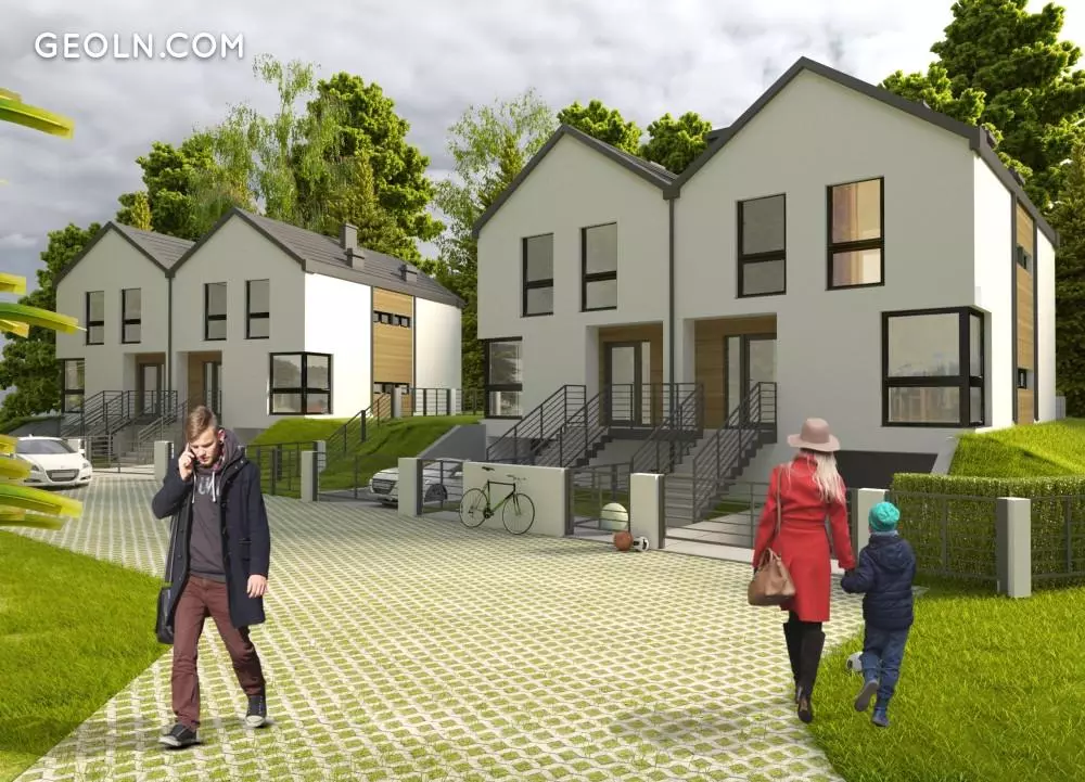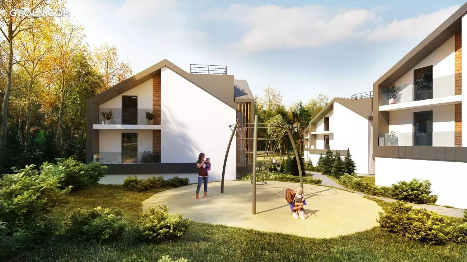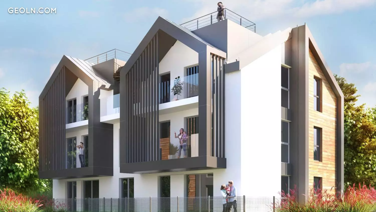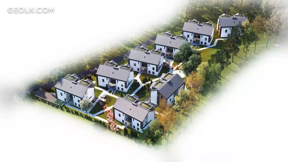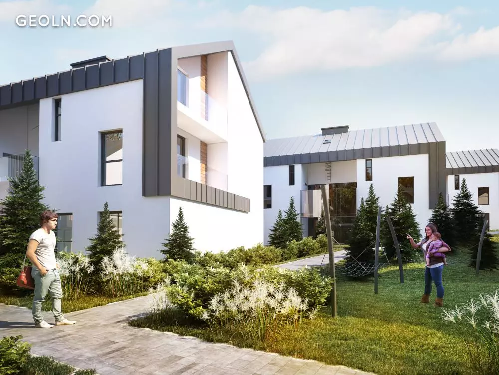 تم تشييد المباني والمنازل ذات الطابق الواحد الحميمة بأسلوب معماري حديث ، مع تخطيطات غير منتظمة لجسم مستقيم وأسقف مائلة مغطاة بصفائح معدنية. تطغى ظلال اللونين الأبيض والرمادي على تشطيبات الواجهة ، وهناك العديد من العناصر الزخرفية في لون الخشب والزجاج الواسع ، بما في ذلك درابزينات الشرفة والتراس ، وتم إنشاء تراسات على السطح الأخضر في بعض الاستثمار.