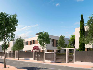 منطقة مسيجة بالكامل مع بوابة للتحكم عن بعد التلقائي وجهاز اتصال داخلي يقع أمام بوابة المدخل ،