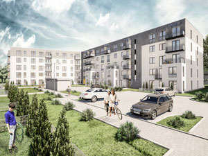 В рамках проекта мы спроектировали более 300 современных квартир в двух 8- и 6-этажных зданиях, а также подземных парковок. Мы создали это место для семей с детьми, одиноких людей и пожилых людей, ищущих личный оазис комфорта, а также для инвесторов, желающих защитить свой капитал от инфляции.