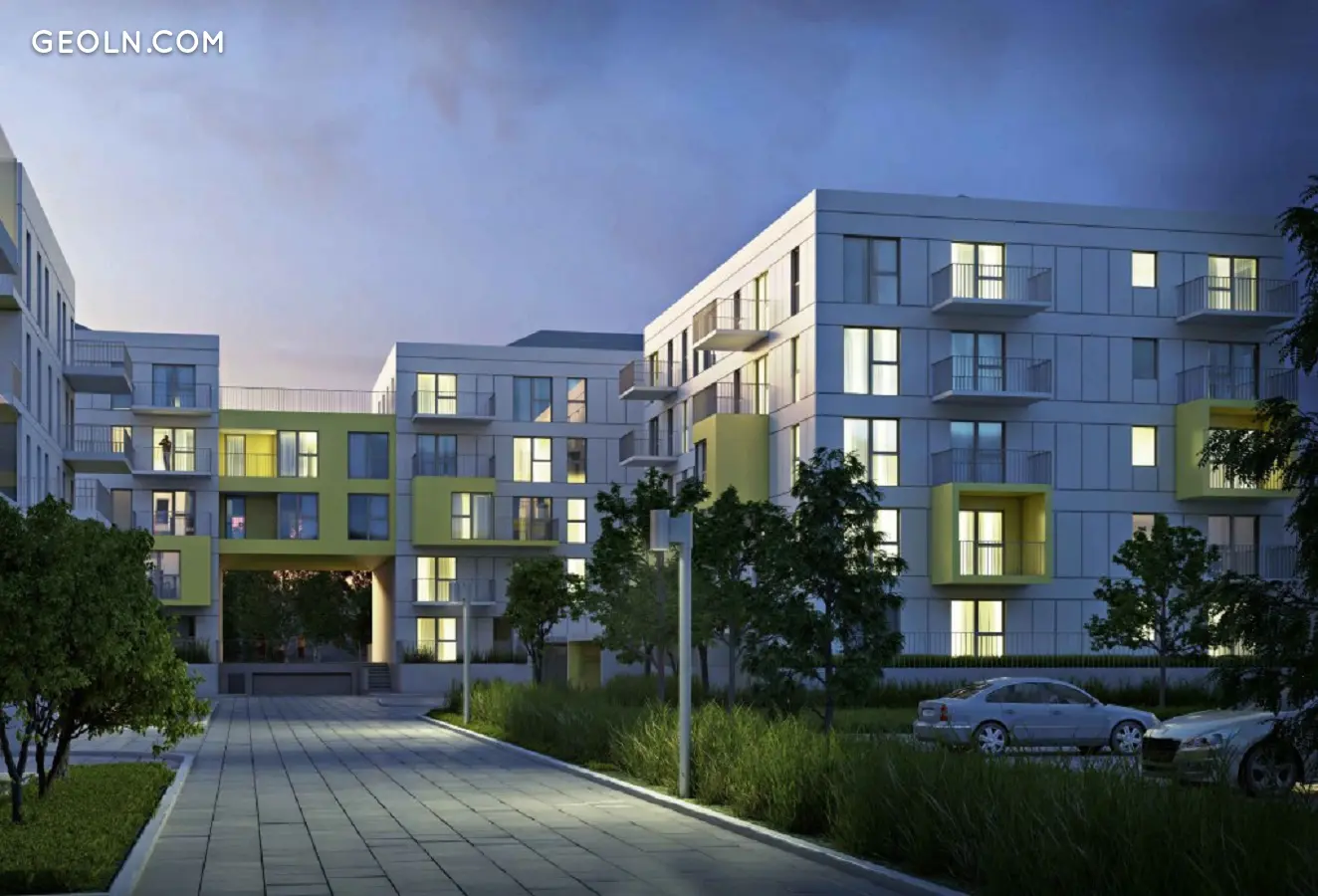تم تصميم ملعب للأطفال ومنطقة ترفيهية مع نباتات خضراء في الحوزة. تم تجهيز الحوزة بالمصاعد الصامتة وغرف التخزين. توجد مباني تجارية وخدمية في الطابق الأرضي. تتوفر أماكن وقوف السيارات تحت الأرض والأرض للمقيمين. يوفر الاستثمار التدفئة من شبكة التدفئة البلدية.