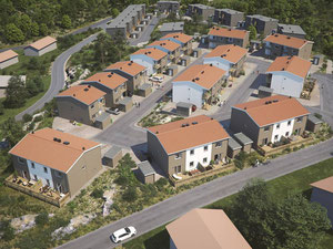يشمل الاستثمار منازل من ثلاث وأربع غرف تتراوح مساحتها من 124 إلى 134 مترًا مربعًا. تحتوي المنازل على ثلاثة طوابق وحدائق وشرفات وسندرات وجراجات صالحة للاستعمال ويتم تدفئتها بغلايات تكثيف الغاز.