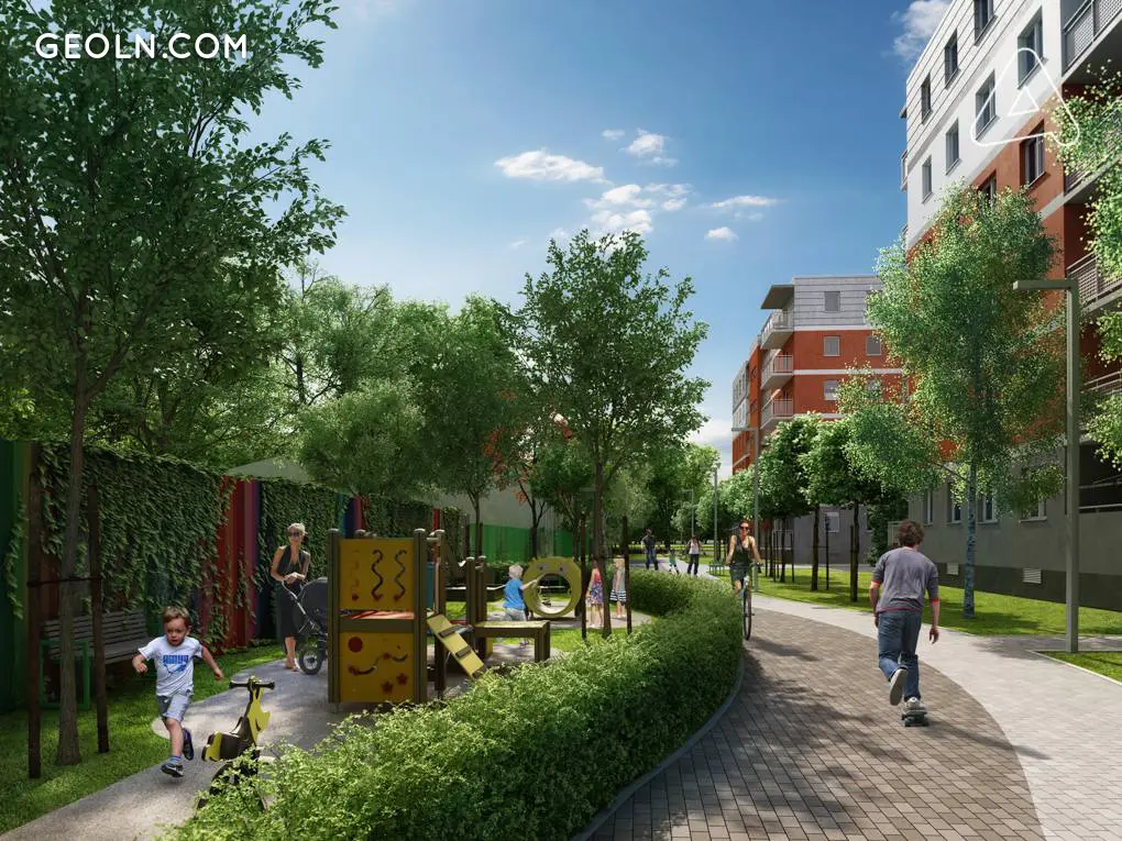 منطقة الاستثمار مسيجة جزئيًا ، مع أمن ومراقبة على مدار الساعة. توجد تركيبات نباتية ومروج مُعتنى بها جيدًا حول المباني. يمتلك السكان ملعبًا وناديًا للياقة البدنية وصالة ألعاب رياضية خارجية ومواقف للدراجات وغرفة للدراجات وغرف تخزين ومواقف للسيارات فوق الأرض ومواقف للسيارات في مرآب تحت الأرض.