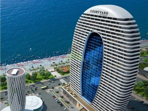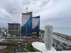 فيديو عند الطلب. هيكل أسود. إطلالة على البحر
