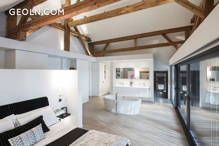 هذا التجديد الرائع ، حيث بقيت فيه الجدران والإطار الخشبي فقط ، يخلق جوًا فريدًا ودافئًا وممتعًا للغاية.