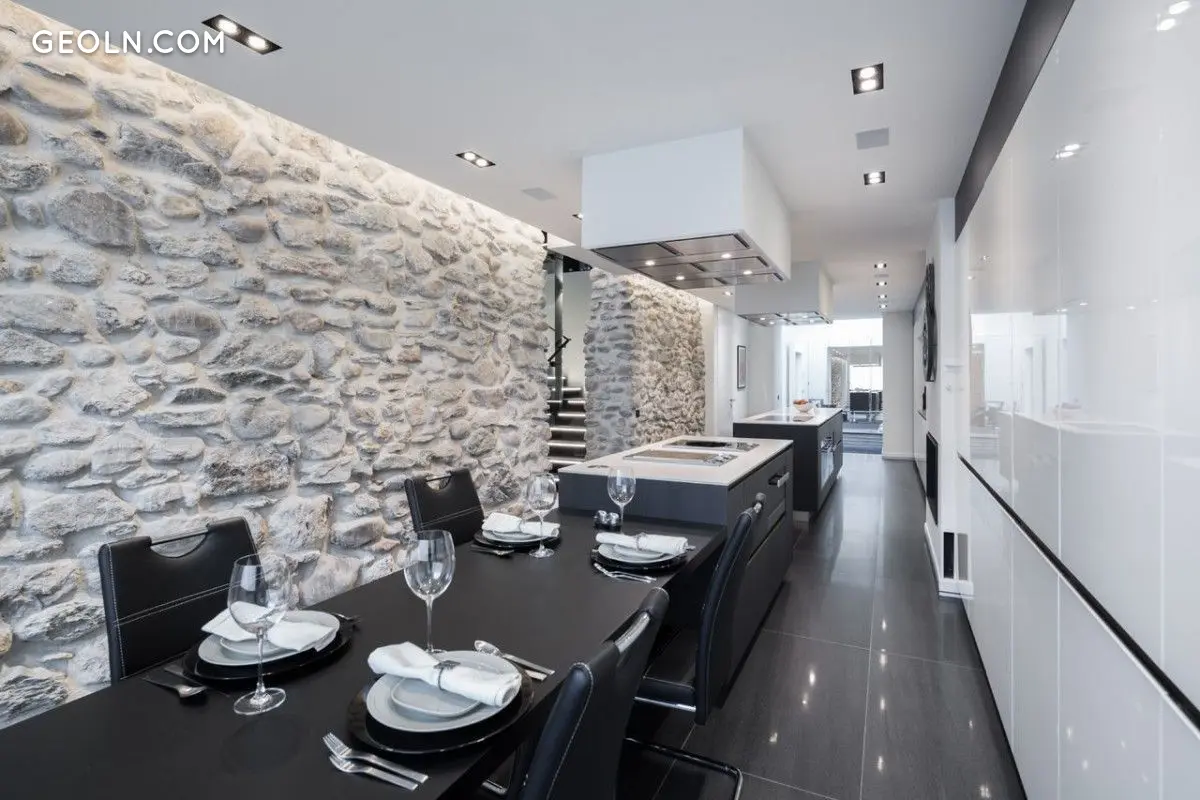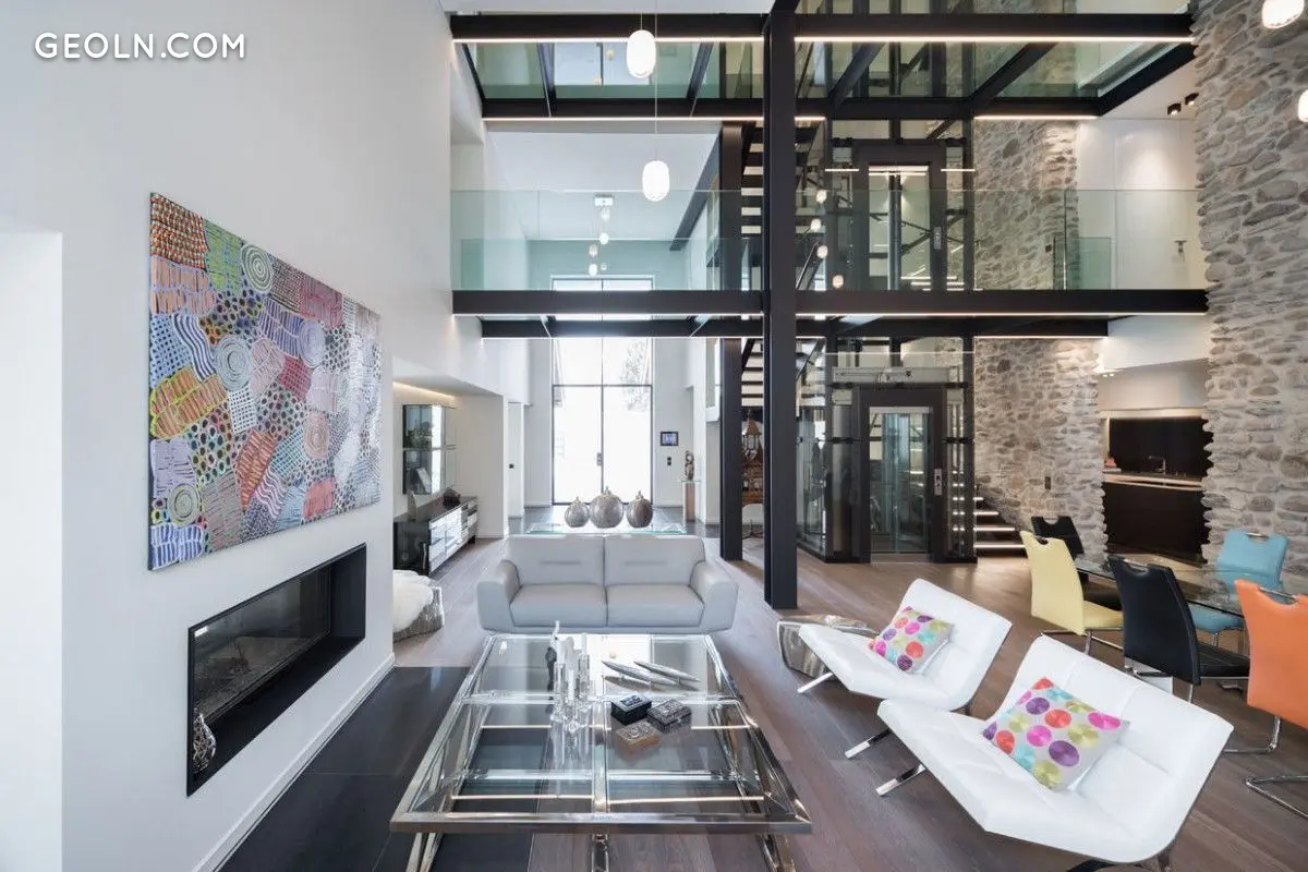 تتناغم الإضاءة الذكية ، وهي مزيج من الزجاج والمعدن ، وعوارض تم ترميمها بدقة مع تركيبات رائعة.