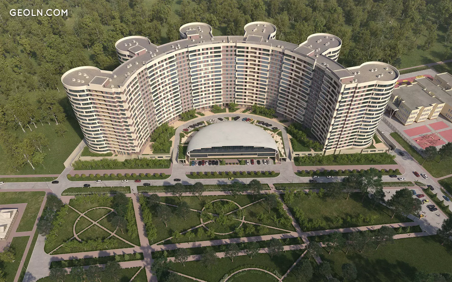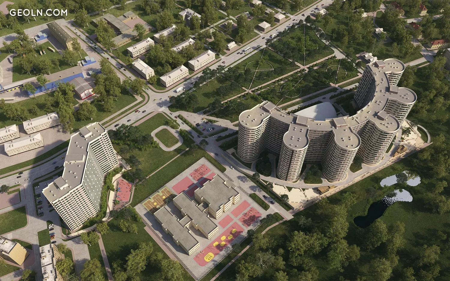 تم تخصيص مساحة 9.11 هكتار للمبنى الجديد ، حيث كانت المنازل الخشبية قبل الحرب. حول المدينة البنية التحتية راسخة ، على مسافة قريبة من مركز التسوق "Sunny Paradise" والمتاجر ورياض الأطفال والعيادات وصالونات التجميل والمؤسسات الخدمية الأخرى.