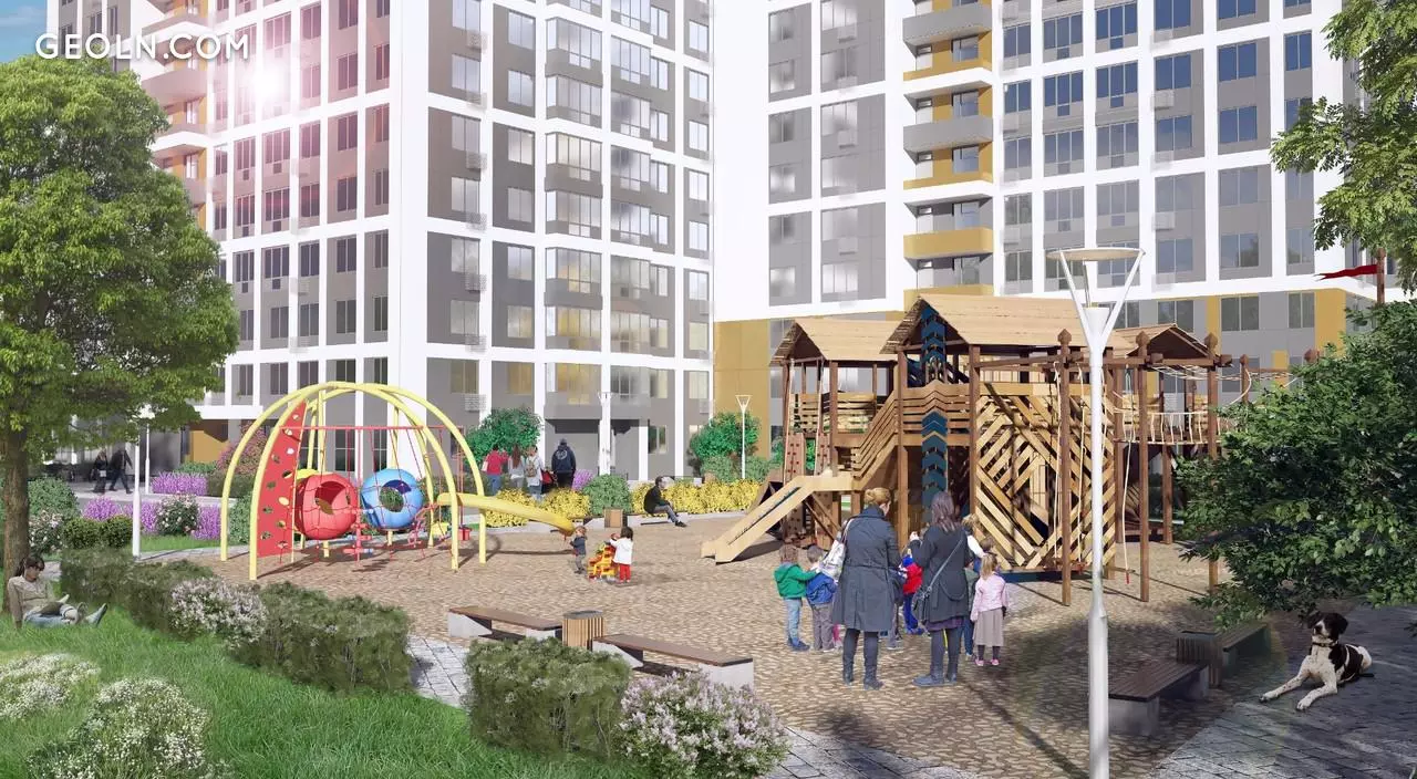 يجري تحسين المنطقة المجاورة ، ويجري تنفيذ أعمال تنسيق الحدائق. تم تجهيز ملاعب رياضية حديثة وملعب للأطفال وموقف سيارات للضيوف. يتم بناء موقف سيارات متعدد المستويات فوق الأرض ، ويتم وضع الممرات والممرات المرصوفة بألواح الرصف وفقًا لخطة التطوير.
