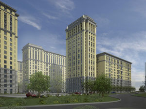 ثلاثة أقسام من المبنى تشكل فناء شبه مغلق حيث يقوم المطور بتنفيذ أعمال التحسين. سيتم إنشاء ملاعب وملاعب رياضية في الفناء ، وسيتم زرع المروج ، وسيتم تنظيم أماكن للترفيه. ستكون ساحة انتظار السيارات مفتوحة بالقرب من المنزل وعلى طول الشارع.