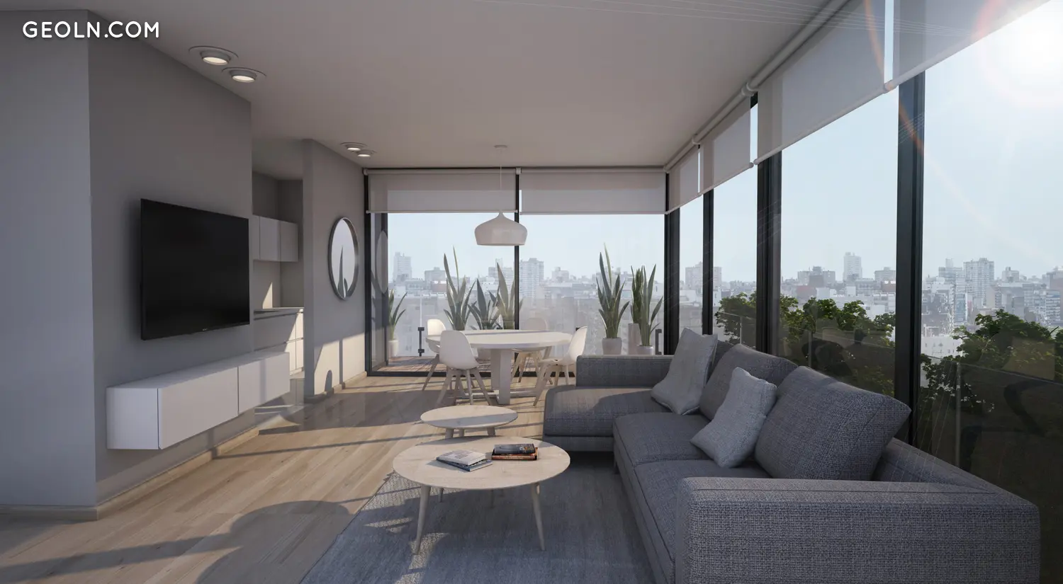 Wood and/or porcelain floors in the living room and bedrooms, Porcelain or glazed ceramic in bathrooms and balconies.