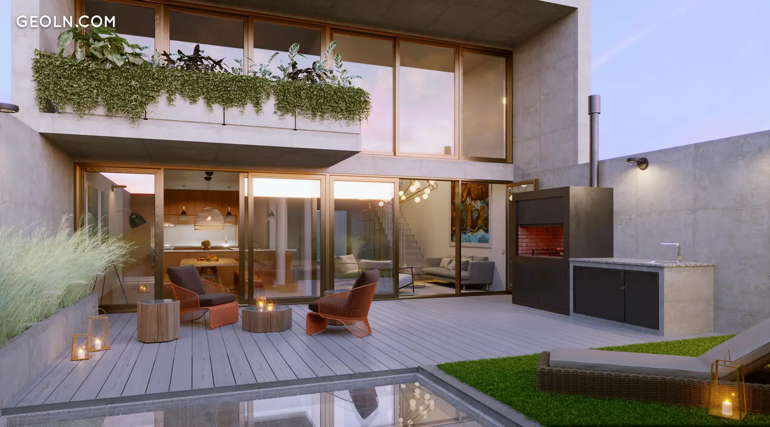 The two largest units, called "CASA TIERRA" and "CASA AIRE", will have their own amenities, such as an outdoor kitchen space, a pergola-type area, green space, solarium and pool.