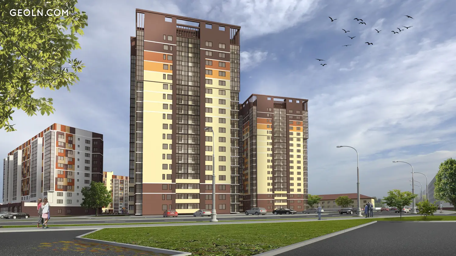 Residential building on the street. Papanina is a new stylish building with spacious apartments located next to a picturesque park.