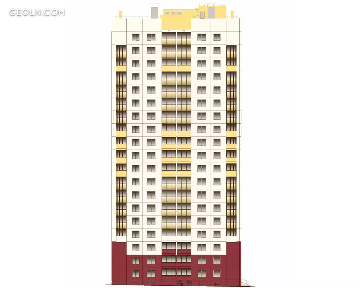 An apartment building with a height of nineteen floors is constructed from prefabricated prefabricated reinforced concrete products.