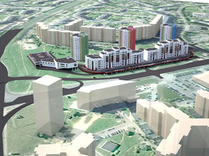 Территория озеленяется, высаживаются деревья и декоративные кустарники, разбиваются газоны. Первый этаж почти полностью предназначен для размещения магазинов, офисов и других объектов собственной и городской инфраструктуры.