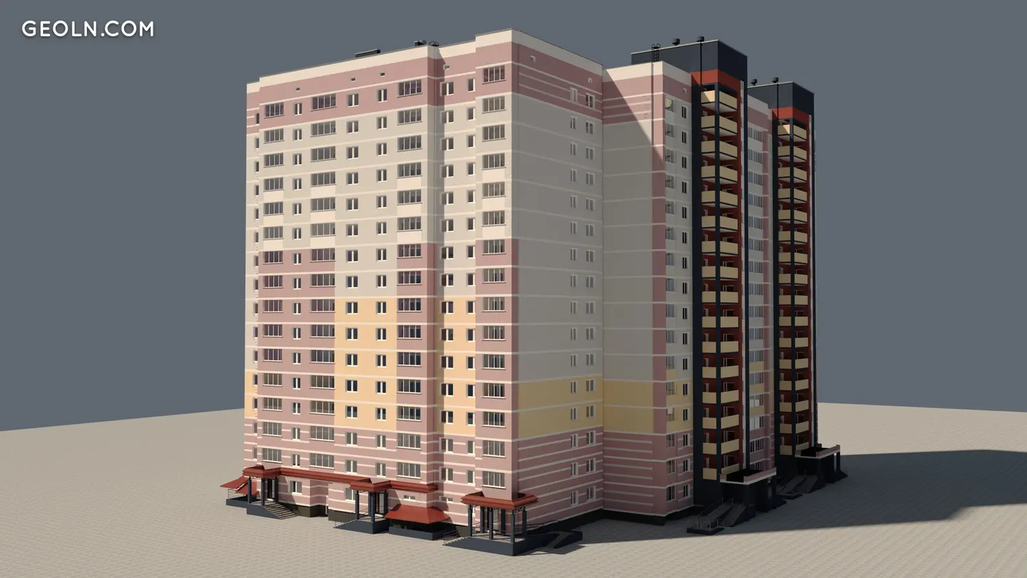 The sixteen-storey one-section house is being built using monolithic frame technology. The outer walls are made of aerated concrete. The facade is insulated and has high energy efficiency.