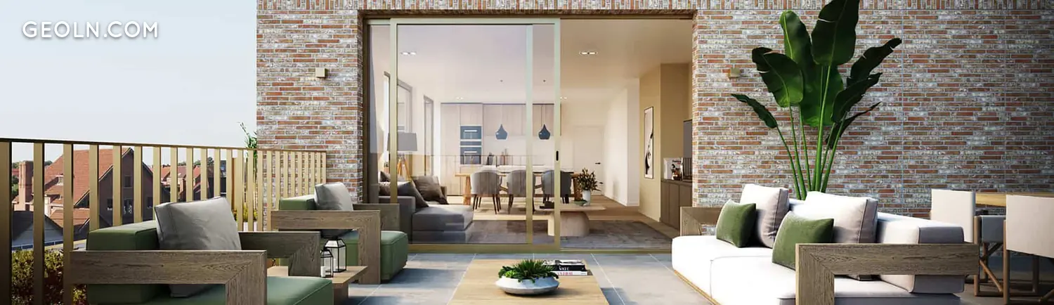 Hopveld comprises 46 apartments & penthouses with 2 or 3 bedrooms and 2 commercial spaces. The 2 characterful buildings fit in perfectly with the environment and are positioned in a V-shape around a common green inner area where it is wonderful to relax.