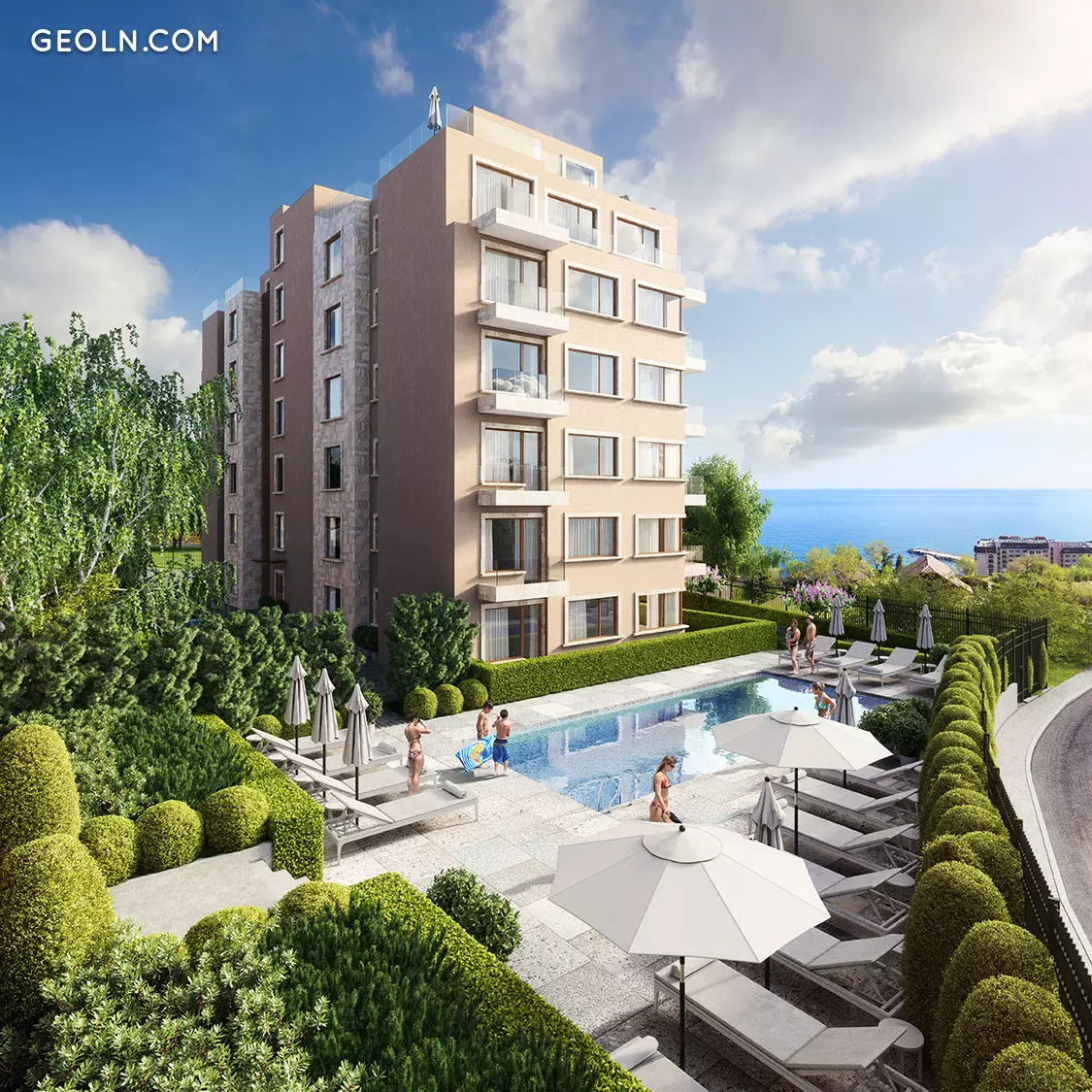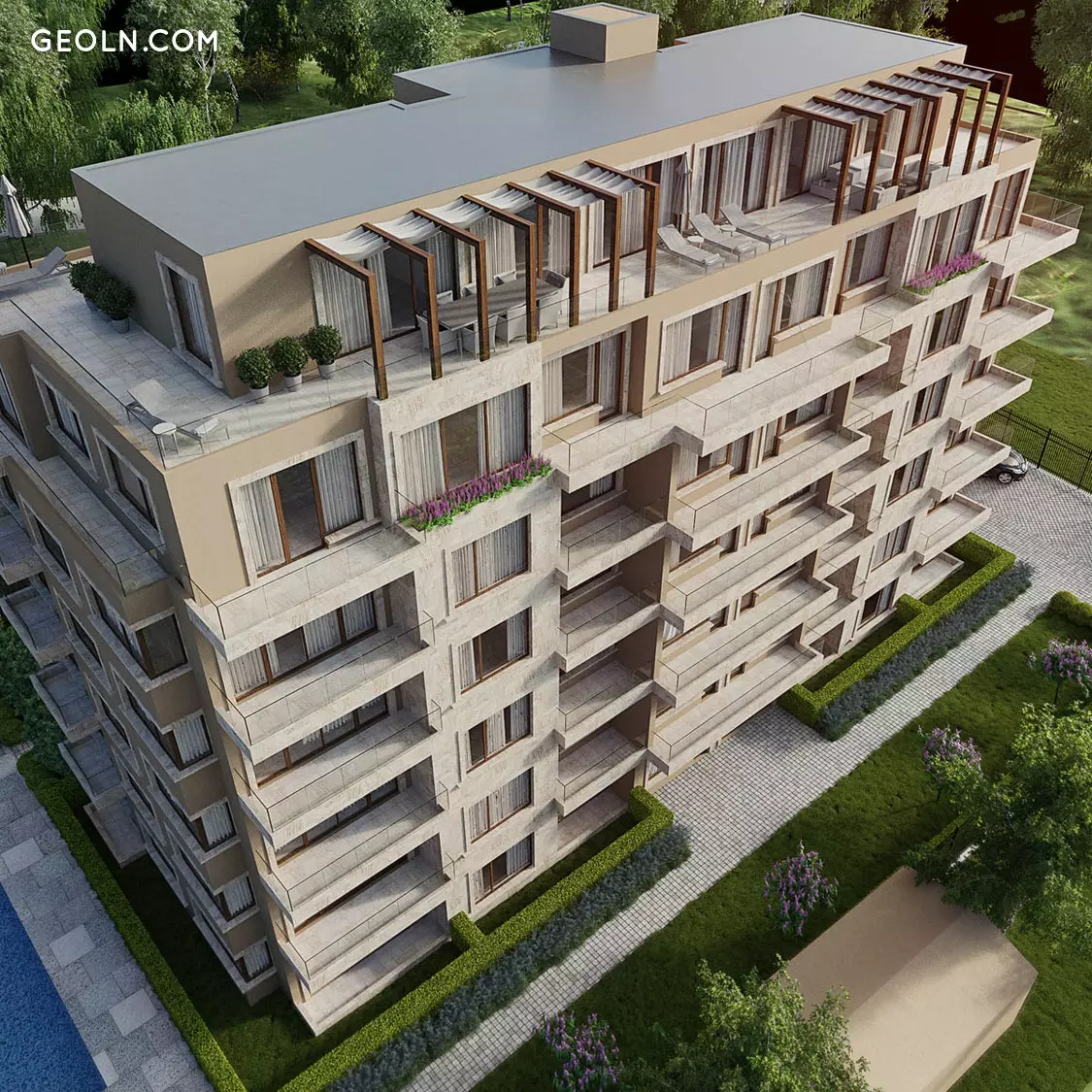 Elegance Residence is a 7-storey building of modern architecture, consisting of only 29 comfortable apartments: 16 one-bedroom apartments, 12 two-bedroom apartments and a luxury penthouse located on the top floor of the building. Depending on the location of the apartment, future owners may choose a view to the southeast or southwest, but the sea view is guaranteed from all apartments! All apartments will be finished in accordance with the Bulgarian state standard (BDS). The common parts are fully completed, the floor is tiled, the walls and ceilings are painted, automatic lighting with a photocell (according to the project). Infrastructure includes a green area, an outdoor pool with a relaxation area, a barbecue area, open parking for apartment owners and their guests, etc. Professional maintenance of the building and territory, security and video surveillance are provided.