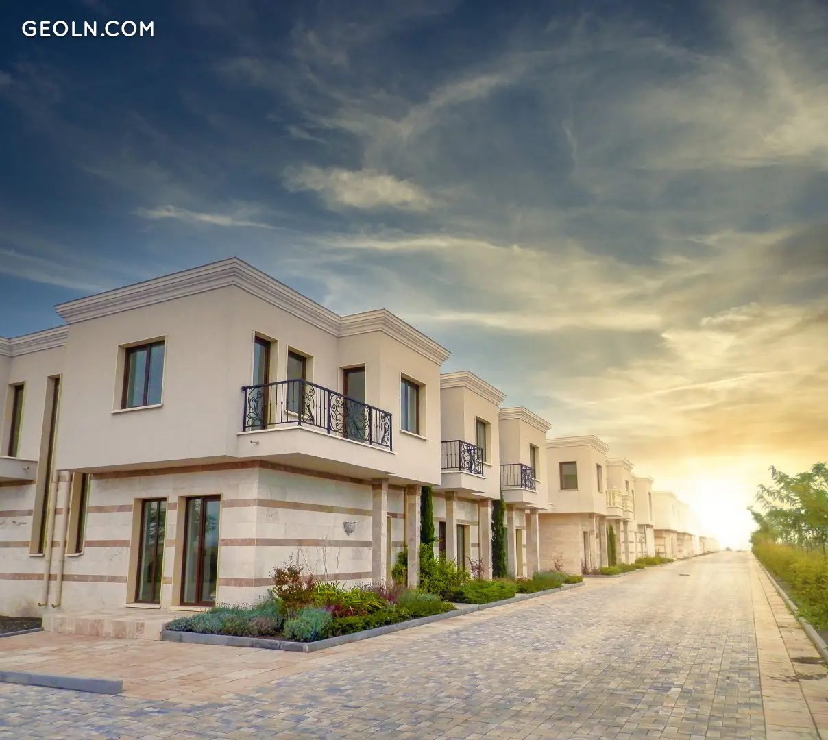 The houses are arranged in six rows so that they can be served by five streets, forming the so-called "Air corridors". Their location creates comfortable shady areas for relaxation on hot summer days. The facade of each house is lined with beautiful, natural travertine stone. In addition to an elegant appearance, natural travertine is resistant to the vagaries of weather and marine climate, while also having thermal insulation properties.