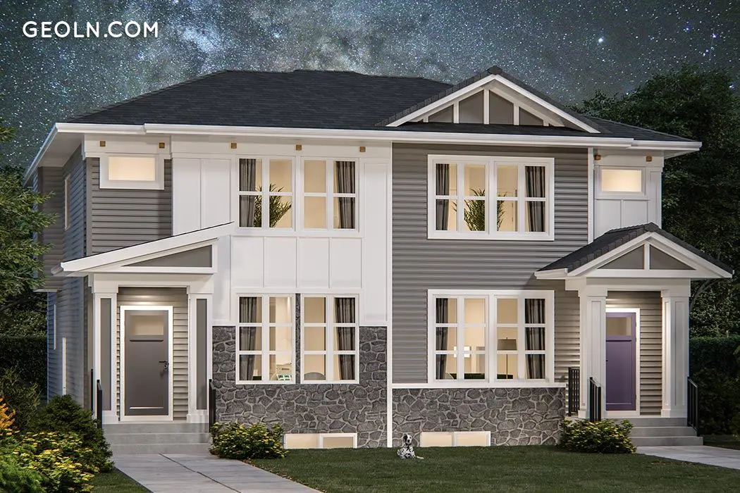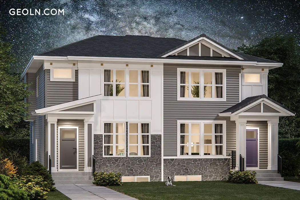 The duplexes in Savanna feature quartz countertops and 9ft basements with optional basement or revenue suite development.