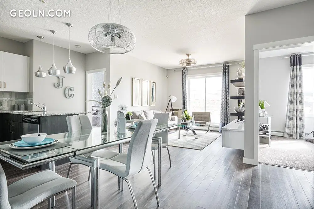 Village at Walker Lakes, condos for sale in Southeast Edmonton. Where do we begin? This building is in a league of its own, in so many ways.The buildings components are constructed in ACQBuilt, putting it very first for sound proofing and premium quality. This means that the walls, floors and roof were built indoors by robotics. This innovative and precise building technique allows for accuracy down to the millimetre. This is one of the only buildings of its kind, and muting sound vibrations from your neighbours is just the start. The interior selections you get to customize from scratch, colour board free! There are 4 floors, with several open concept layout options, the building includes underground parking, balconies, clean modish hallways, air conditioning, triple pane windows, endless interior options all in the privacy of your own Village. Affordable, realistic condo fees bundle up your utilities so your payments are simplified and straight forward.You’re situated next to the pond, with city transit running right outside the building. The Village at Walker Lakes was designed by Landmark Homes to evolve into its own walkable, green prestigious Village. You're next to major roads and amenities and one of Edmonton’s most sought after shopping centres, South Edmonton Common. This building checks off everything on the list, location, constructed with the highest quality sound proofing, a variety of bedroom and bath sizes, countless interior options, all in your own private village. Live smart. Live urban. Live Stonehaven. Visit us to reserve your spot in the second wing of the building–before they’re all sold!
