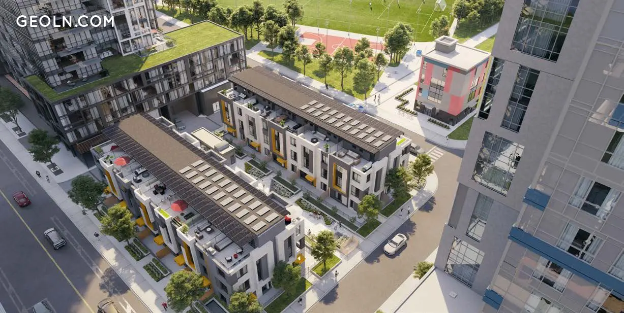 Located at River Street and Wyatt Ave in the heart of downtown east, Field House is the first Daniels’ EcoUrban Designed community. These unique 3-storey townhomes combine captivating style with environmentally-friendly features to create a living space that is as thoughtful as it is comfortable. Available in 3 bedroom and 3 bedroom + den layouts, Field House is a truly a one-of-a-kind community and a leader in creating sustainable housing. Features like rooftop solar panels, high efficiency heat pumps and triple glazed windows reduce the carbon footprint while also providing peace-of-min