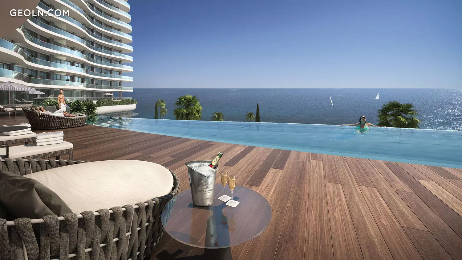 The façade of the building stretches 170 meters along the coast, guaranteeing spectacular sea views from every apartment. Del Mar is a rare opportunity to combine living in the center of a cosmopolitan city with the tranquil Mediterranean atmosphere.