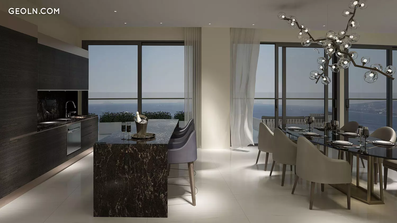 The complex is located on the shores of the Mediterranean Sea, in one of the most prestigious areas of Limassol and consists of two high-rise buildings, gracefully curved, reminiscent of the modern architecture of Dubai. Such associations are not accidental: the project was designed by the same experienced team of professionals who have developed iconic structures in many countries - Benoy specialists.
