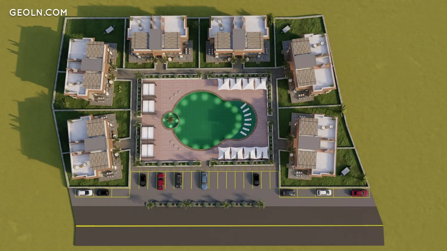 Parking Pool Commercial area Kids playground Restaurant Beauty salons Near kindergarten Near supermarket Near hospital |