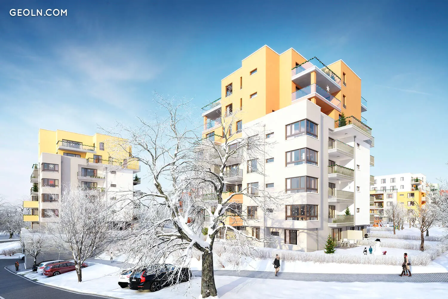 The whole project is divided into three stages, in 2013 145 apartments of the first stage were approved. The current second stage offers 148 more comfortable apartments in Residenz Chamovka, available from 1 + kk to 5 + kk. For the internal planning of houses, the developer relied on customer feedback from the 1st stage, therefore, satisfaction with new apartments will be more pronounced. Each apartment has its own basement, balcony or terrace, the ground floor apartments have their own front garden. In underground garages, parking spaces are available not only for all residents, but also for visitors.