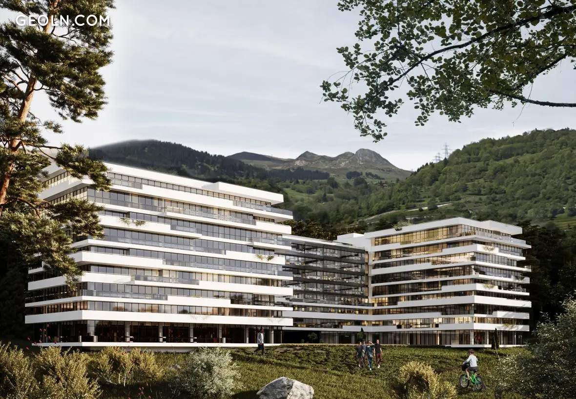 Die Wohnanlage befindet sich neben der Klosteranlage Kecharis, die zur Seilbahn führt, die einen schönen Blick auf die Klosteranlage (Südosten) zur Seilbahn (Westen) bietet
