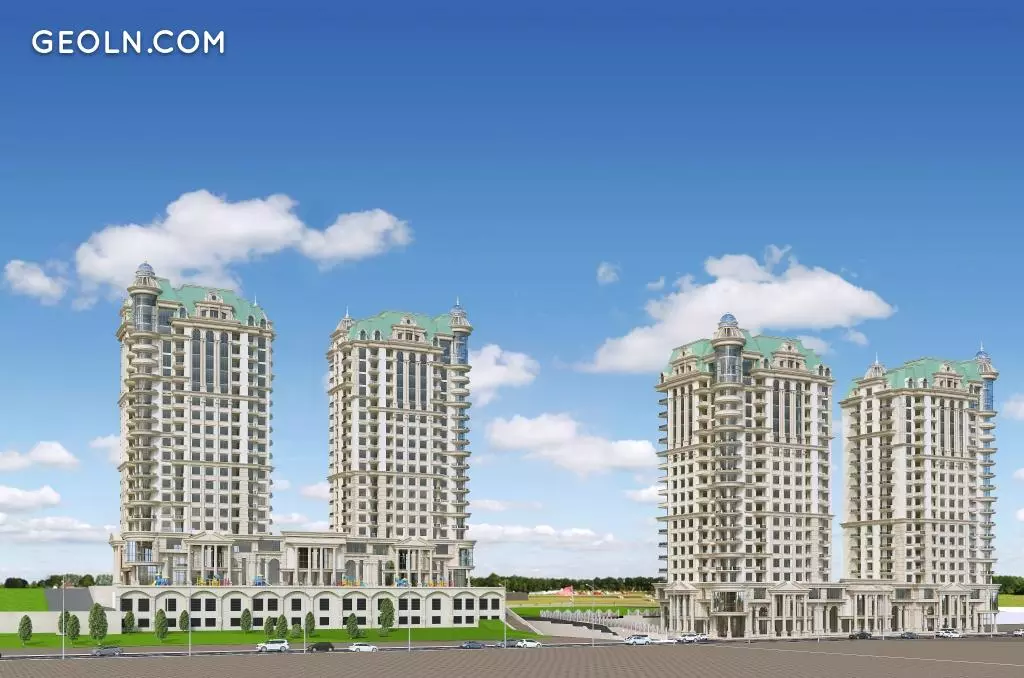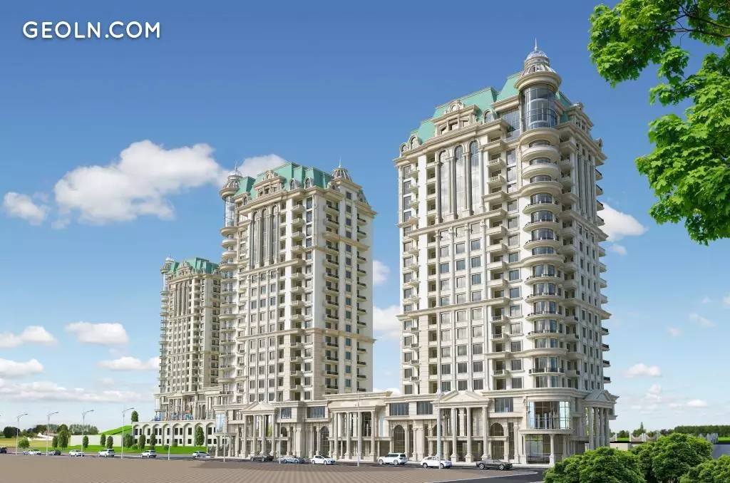 Die Wohnanlage "Panorama Bayil" besteht aus vier Gebäuden mit jeweils 18 Stockwerken. Auf zwei Stylobates gelegen, erheben sie sich unterhalb des Dorfes und bieten einen atemberaubenden Blick auf die Umgebung. Die klassische Architektur ähnelt etwas anderen Mahal-Bauprojekten, bei denen ebenfalls eine Kombination aus beigen Fassaden und einem hellgrünen Dach verwendet wurde.