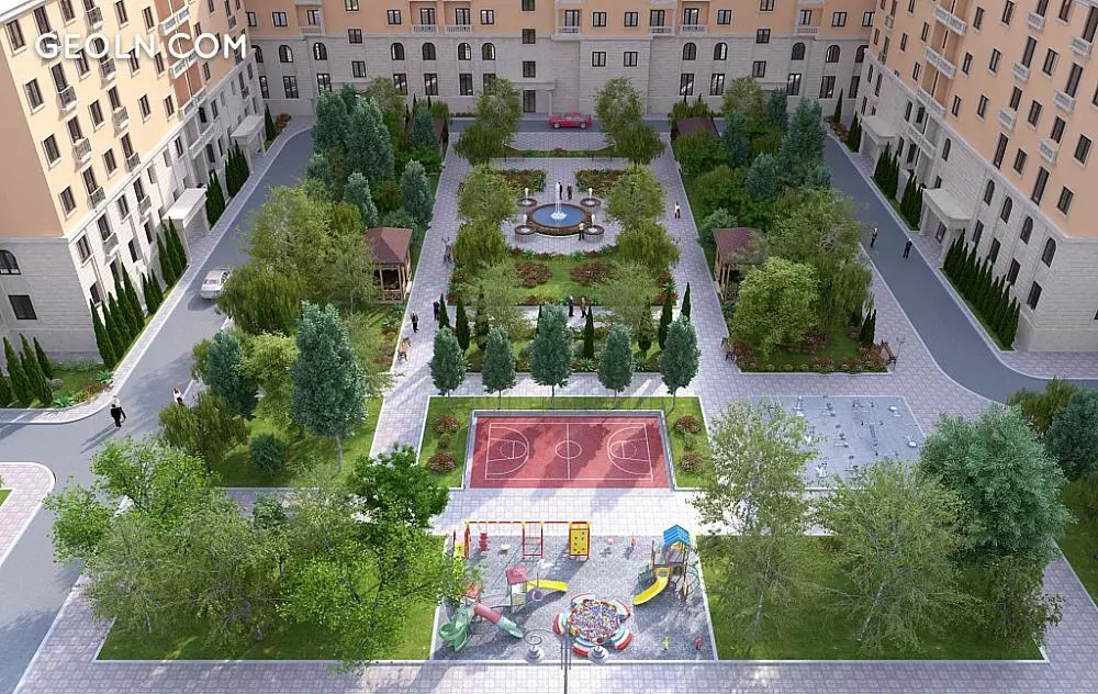 Das angrenzende Gebiet des Wohnkomplexes "Sahil Park" nimmt eine Fläche von ca. 1 Hektar ein. Neben einem Spielplatz, einem Sportbereich und Erholungsgebieten erscheint hier ein weitläufiger grüner Park mit einem Brunnen, in dem Sie zu jeder Jahreszeit Zeit verbringen können. Es ist auch geplant, auf dem Territorium ein modernes Kino, ein Café und ein Restaurant zu betreiben.