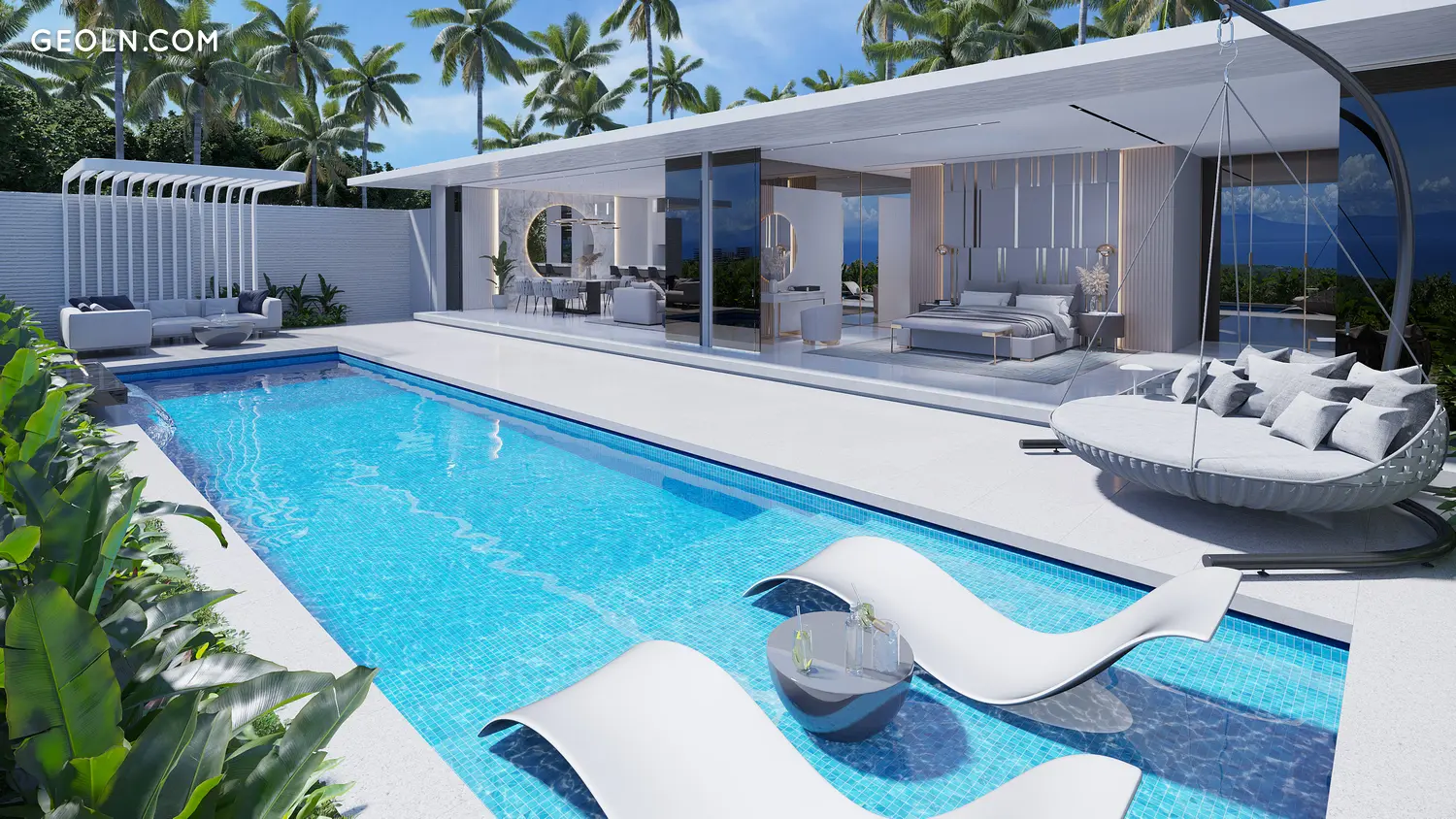 Премиальный дизайн, высочайшее качество материалов, уникальный архитектурный концепт, панорамный вид на океан, ночной город и аэропорт с каждой виллы.