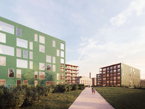 Unter mächtigen Eichen und Linden entstehen zwei gemütliche Mehrfamilienhäuser mit dem Schwerpunkt auf großen Familienwohnungen.