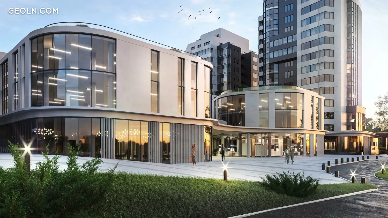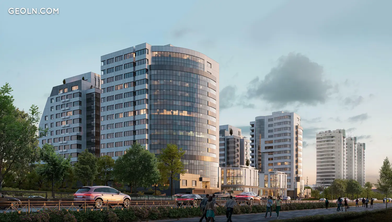 Der Wohnkomplex Exclusive Time umfasst vier Gebäude mit elf bis vierzehn Etagen und ein dreistöckiges Geschäftszentrum mit einer Fläche von 10.000 Quadratmetern.