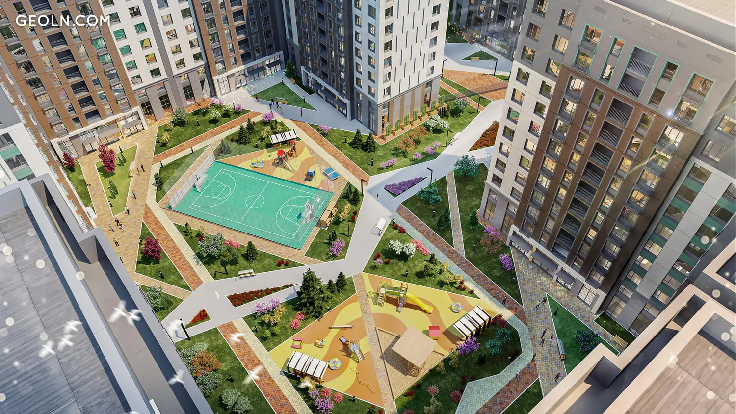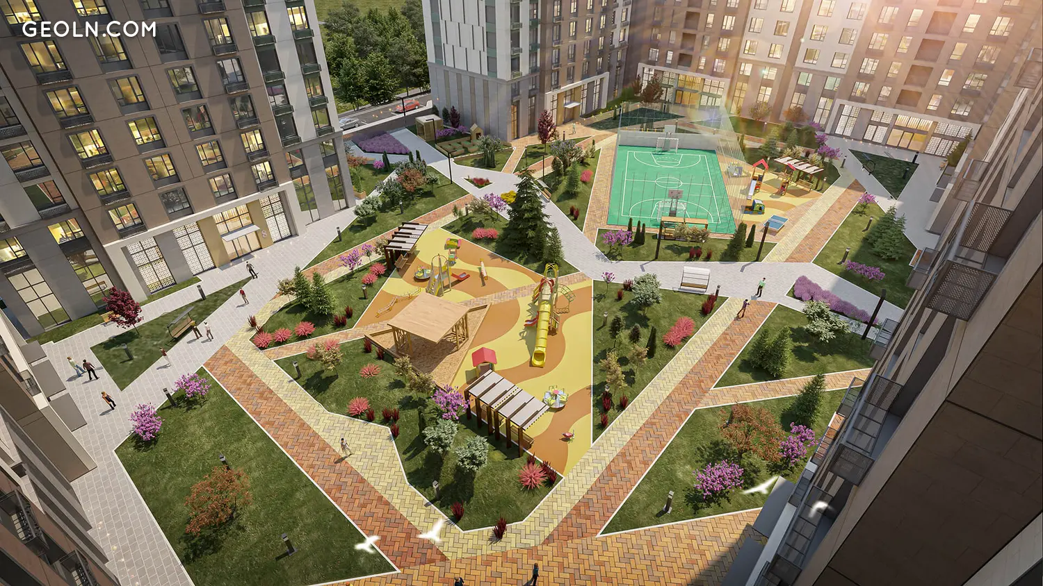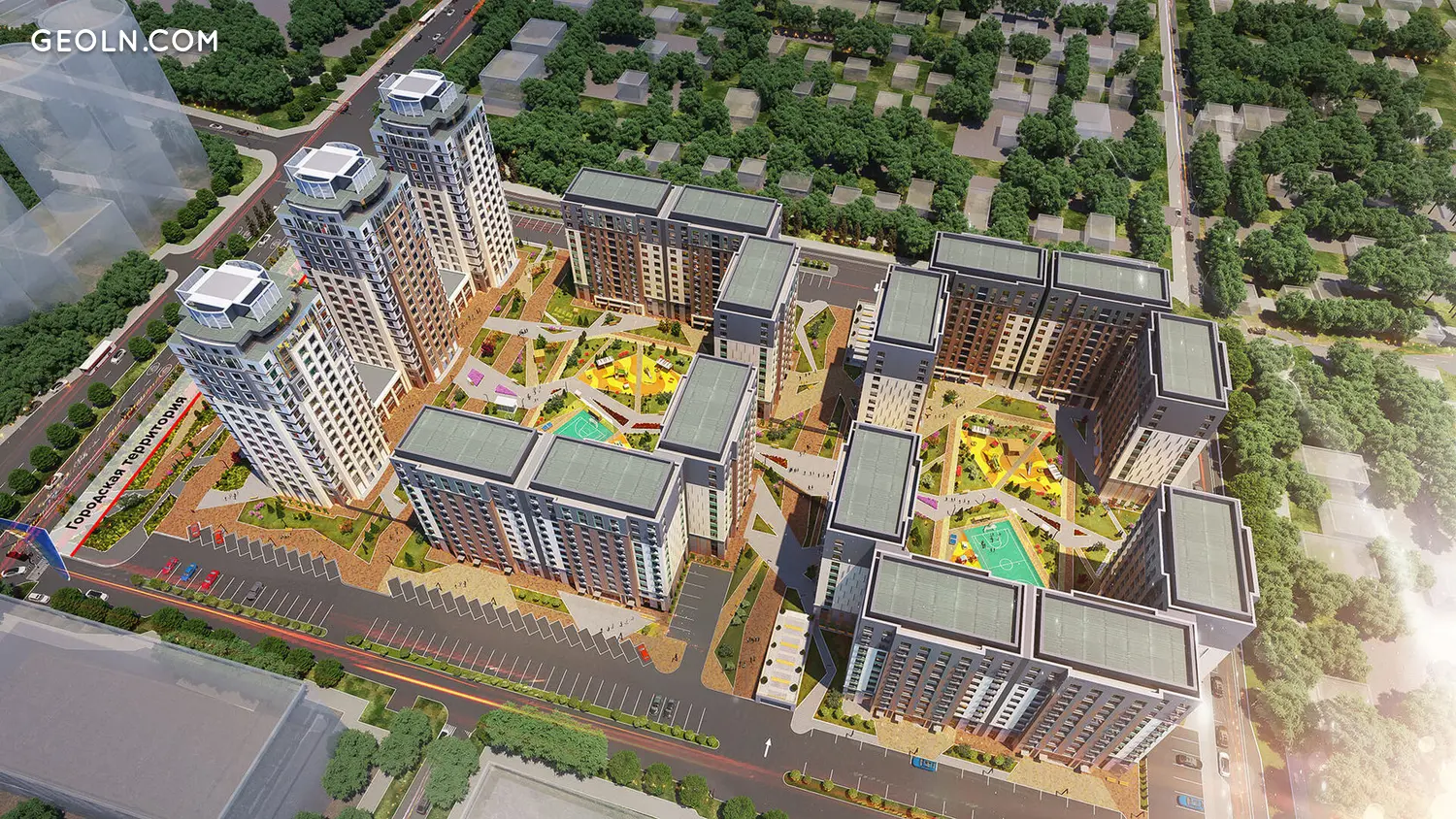 Entlang des Territoriums ist eine Promenade angelegt, entlang derer Bänke installiert sind. Für Kinder werden moderne Spielplätze mit Schaukeln und Rutschen gebaut. Sportplätze mit Outdoor-Trainingsgeräten sowie eingezäunte Felder für Fußball und Basketball werden eingerichtet.