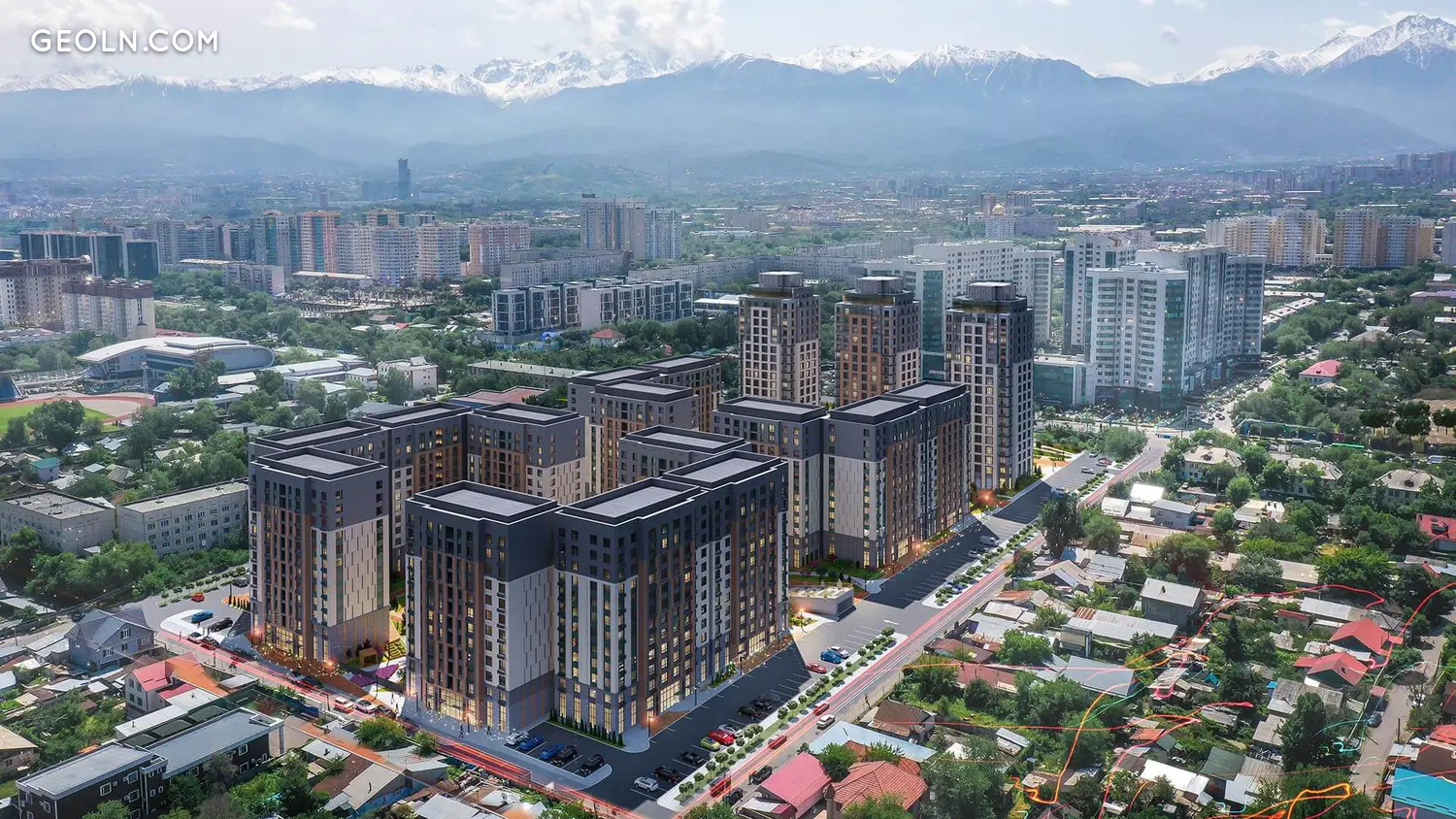 Die Wohnanlage O'NER ist ein neues Großprojekt der BI Group, das seinen Namen zu Ehren des großen Denkers und Dichters Abai Kunanbayev erhielt.