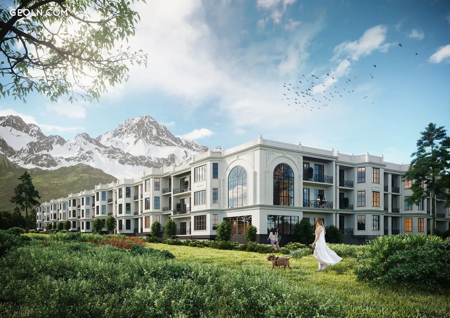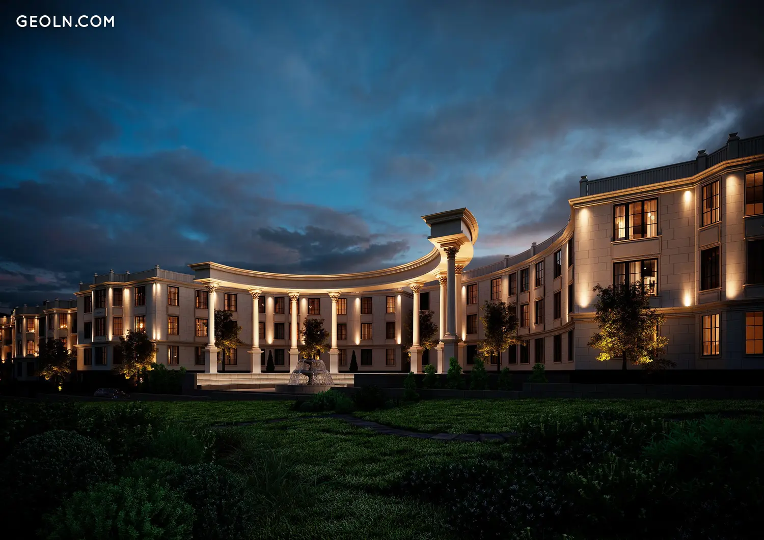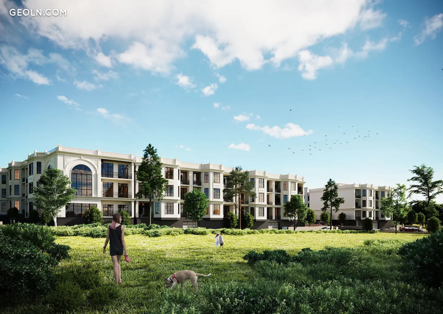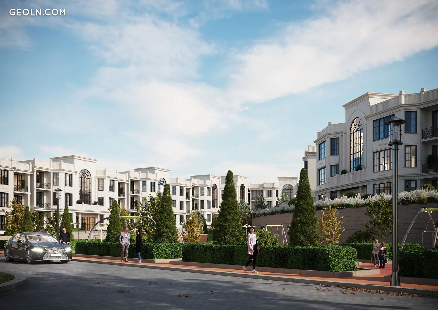 Der Komplex besteht aus vierzehn Häusern mit einer Höhe von drei Stockwerken, die im französischen Stil entworfen wurden. Die Gesamtfläche des Baugrundstücks beträgt 2,3 Hektar. Die Wohnanlage vereint erfolgreich Raffinesse, moderne Lösungen und europäische Qualitätsstandards.