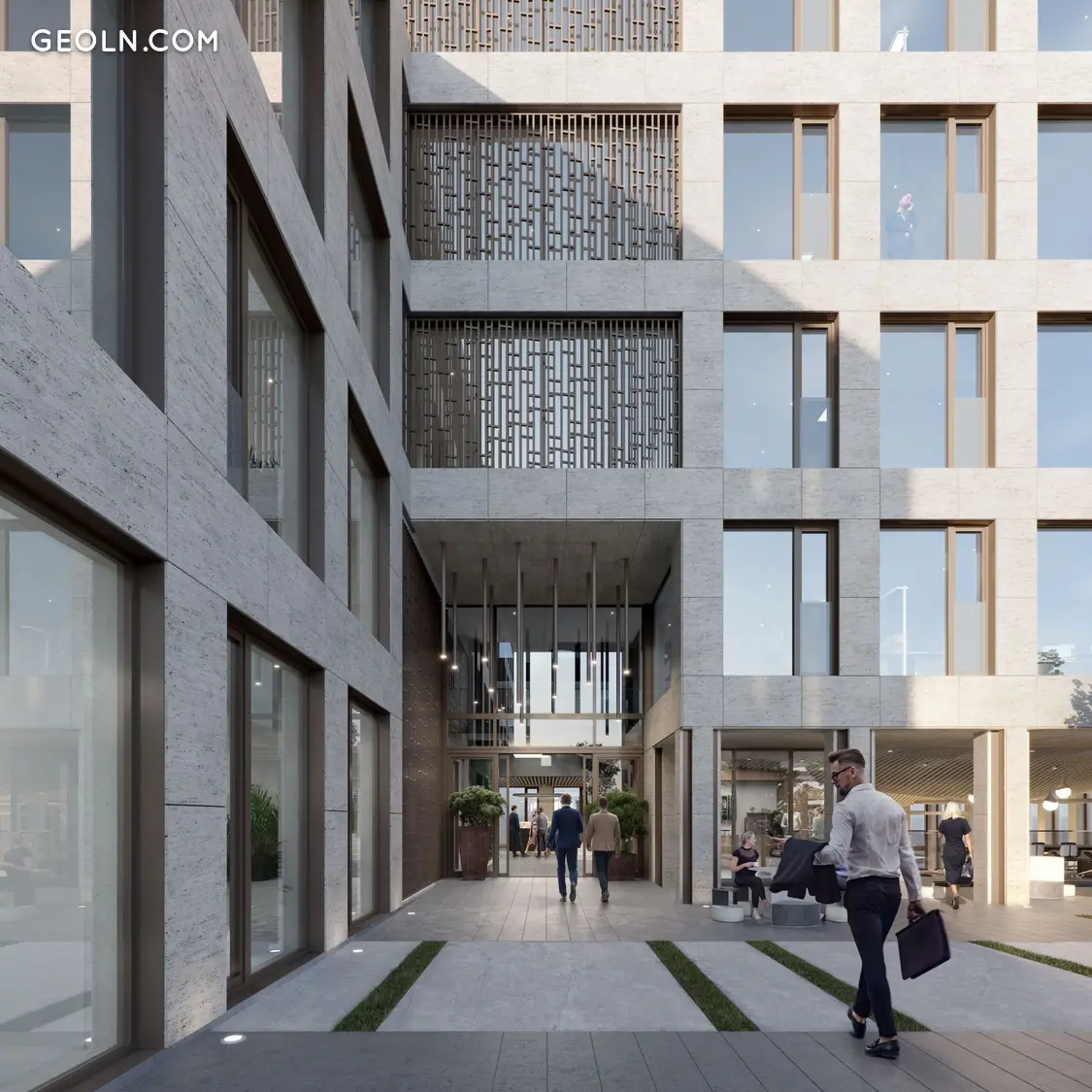 Im Außenbereich sind 550 Quadratmeter Designer-Landschaftsgärten als Arbeitsbereiche konzipiert, können aber auch als entspannende und gesunde Seifenblasen für Bewohner und Besucher genutzt werden.