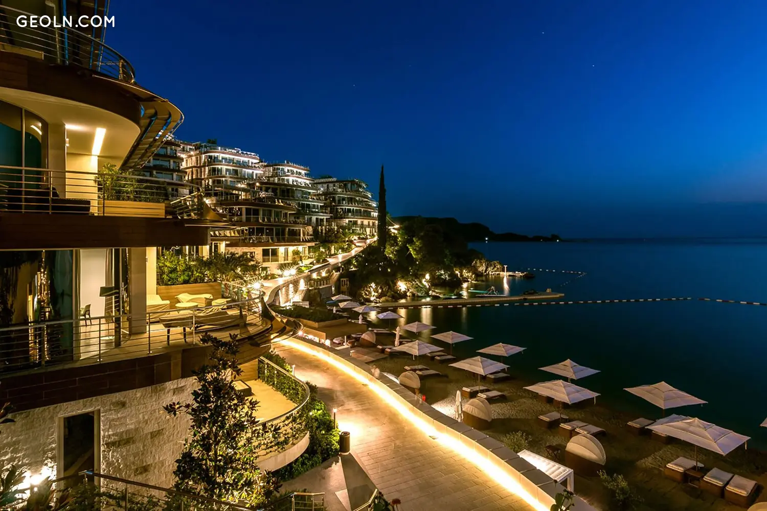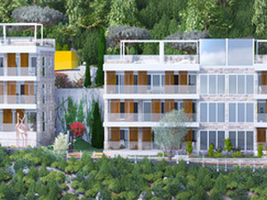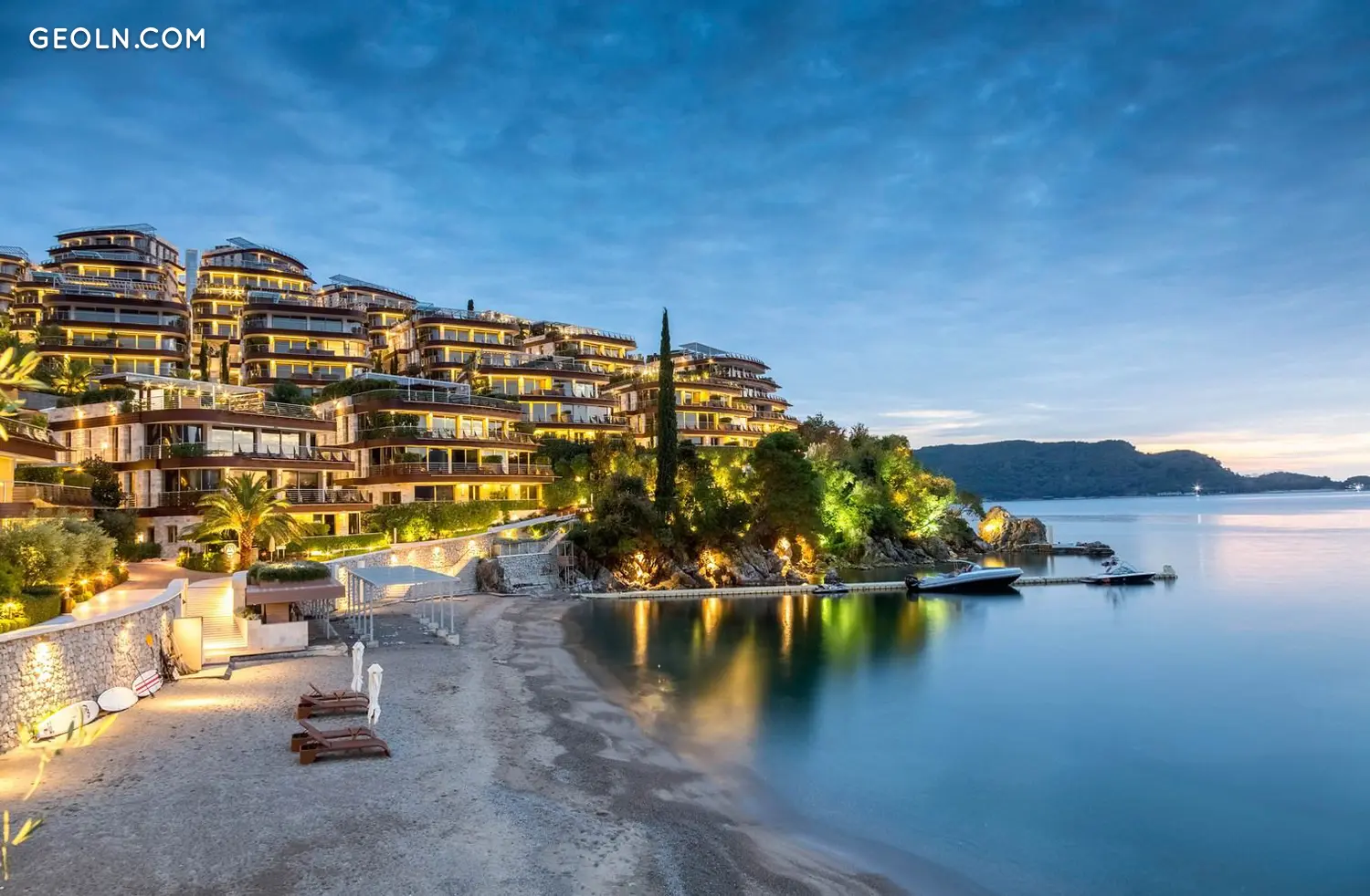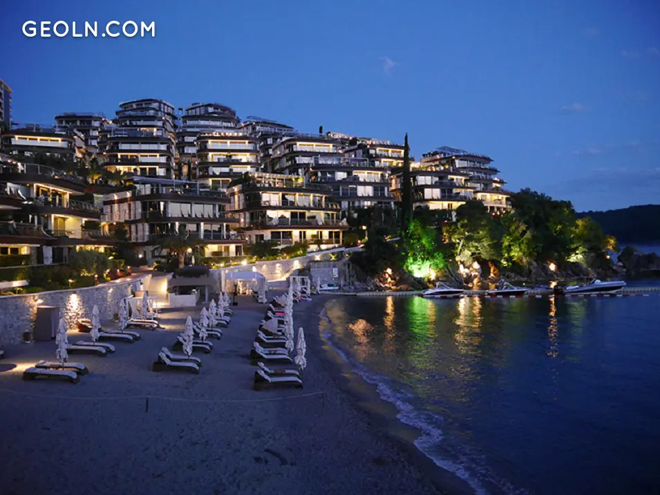 Üppig angelegte Wohneinheiten am Wasser vor der charmanten Altstadt von Budva, einer der ältesten Siedlungen der Adria, bieten einen Panoramablick über das kristallklare Korallenwasser der Adria, majestätische Bergbilder und die Insel Sveti Nikola.