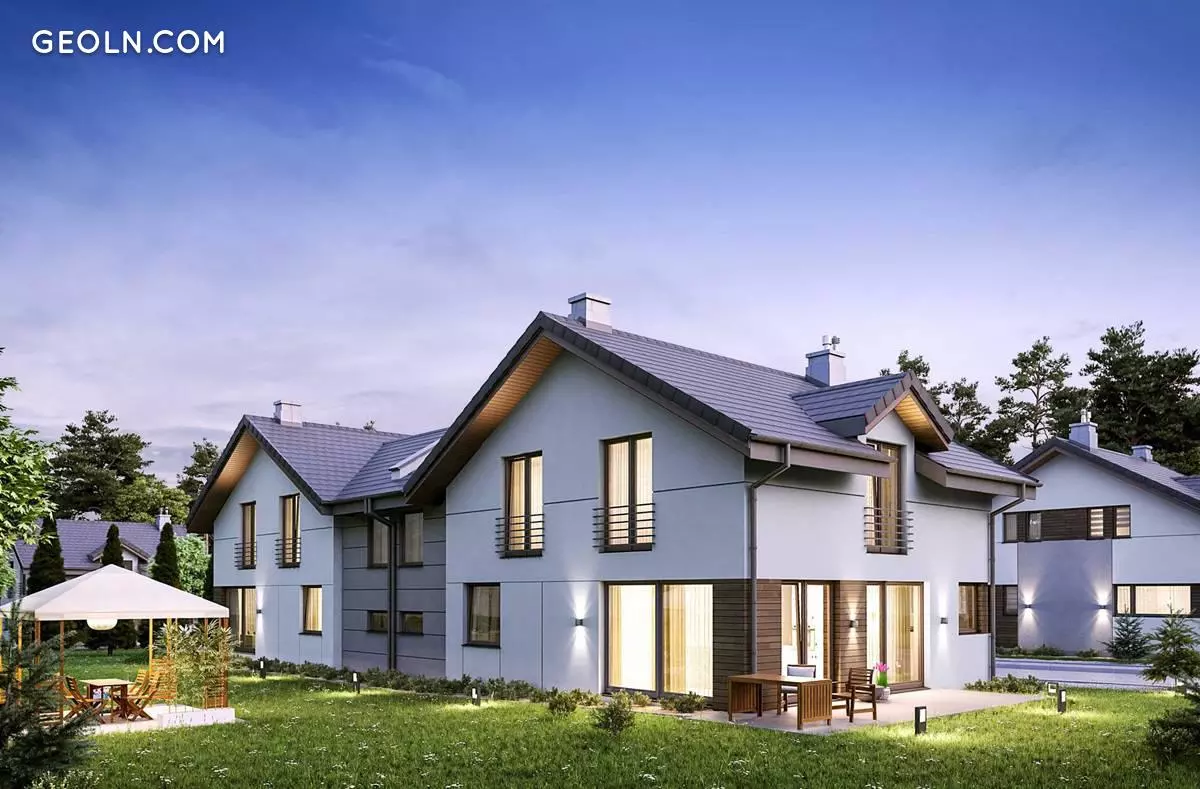 Auf den Grundstücken in der Gemeinde Konopnica (Lipniak 4) wird ein Komplex von Doppelhäusern mit angrenzenden Gärten errichtet. Die Investition wird aus 12 Häusern mit einer Fläche von bestehen 160 m2 mit einer Einzelgarage. Die Immobilie wird im Entwicklerstandard genutzt. Das Gebäude wird mit internen Installationen ausgestattet: Strom, Wasser und Abwasser, Zentralheizung. mit Stahlblechheizungen, Fußbodenheizung und Brenngasherd (Junkers) mit Speichertank, TV, Telefon, Alarm, Gegensprechanlage, Gas- und Zentralstaubsauger. Das Grundstück wird geebnet und mit einem Wicket und einem Eingangstor eingezäunt. Die Auffahrt, das Band um das Haus, die Terrasse und die Bürgersteige werden aus Kopfsteinpflaster bestehen.