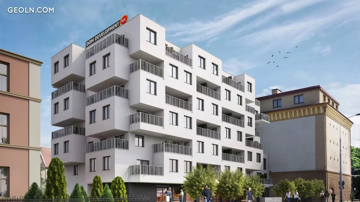 Das architektonische Design der Investition wurde vom Studio Major Architekci vorbereitet. Das Gebäude mit verschiedenen Höhen - bis zu 6 Stockwerken - wurde im modernistischen Stil unter Verwendung einer unregelmäßigen Anordnung eines geraden Körpers errichtet. Von der Hofseite wurden kaskadierende Terrassen angelegt. Die Erhebung ist mit weißen Pflastern abgeschlossen. Im Erdgeschoss wurden Service-Räumlichkeiten entworfen.