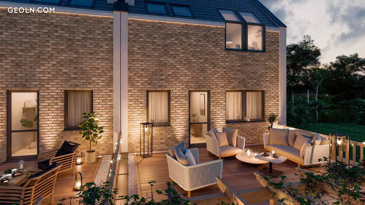 Jede Villa verfügt über 145 m2 Nutzfläche auf drei Etagen, eine Garage für zwei Autos, einen Garten und eine grüne Terrasse. All dies schafft einen Raum, der frei gestaltet werden kann, entsprechend den individuellen Erwartungen zukünftiger Bewohner.