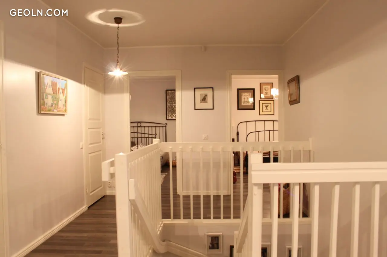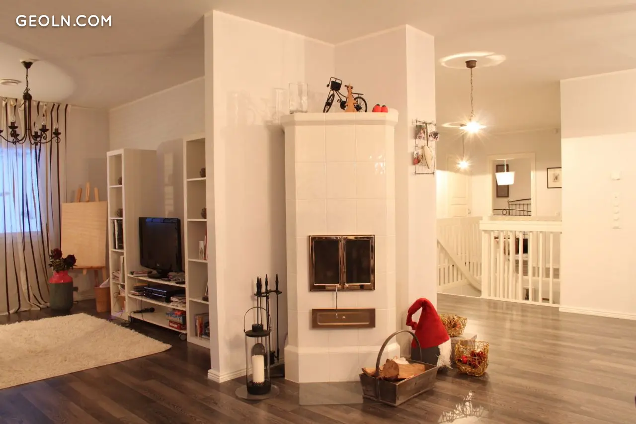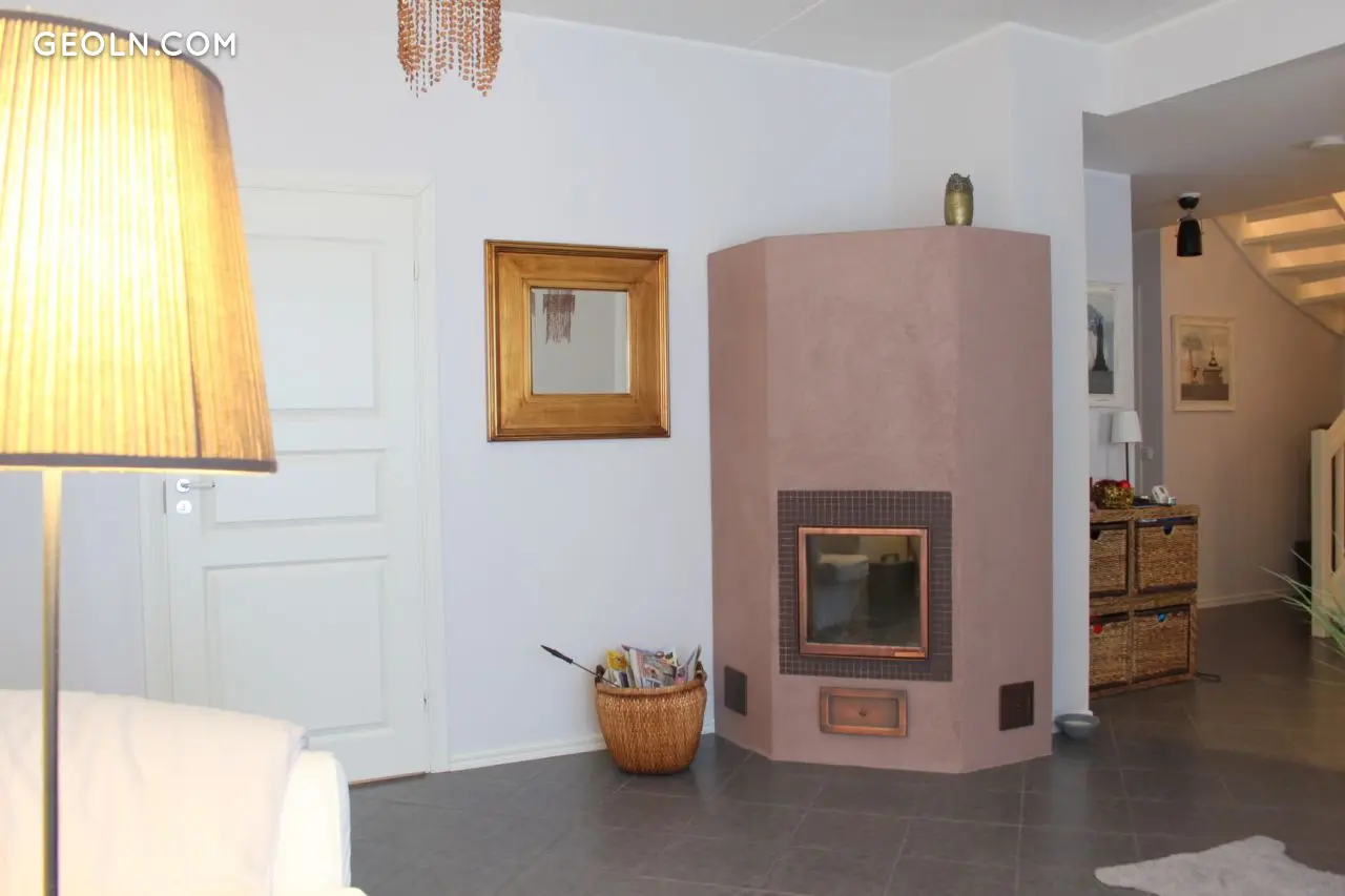 Das Haus verfügt über zwei Kamine: im Kaminzimmer und im Wohnzimmer.Auf der zweiten Etage gibt es vom Wohnzimmer aus einen Zugang zu einem großzügigen Balkon.