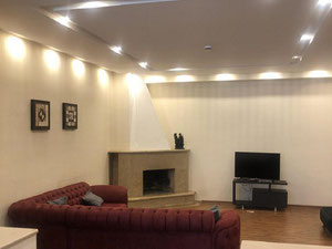 2 große Wohnzimmer, Küche, Esszimmer. 3 Schlafzimmer mit eigenem Badezimmer mit Toilette. (insgesamt 4 Badezimmer). + 1 Raum kann als Büro, viertes Schlafzimmer oder Ankleidezimmer genutzt werden. Im zweiten Stock ist der höchste Teil der Decke im Wohnzimmer 6 Meter, es gibt einen Kamin, ein Heimkino. Den Preis besprechen wir mit einem ernsthaften Kunden. Adresse: Tiflis, Vake, in der Straße Shroshi. 9(10) Etage.