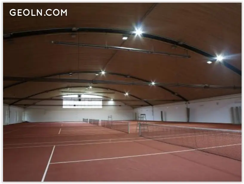 Ebenfalls vor Ort ist eine geräumige 2.268 m2 große Sporthalle mit 4 Indoor-Tennisplätzen, auf denen regelmäßig lokale und überregionale Turniere stattfinden.